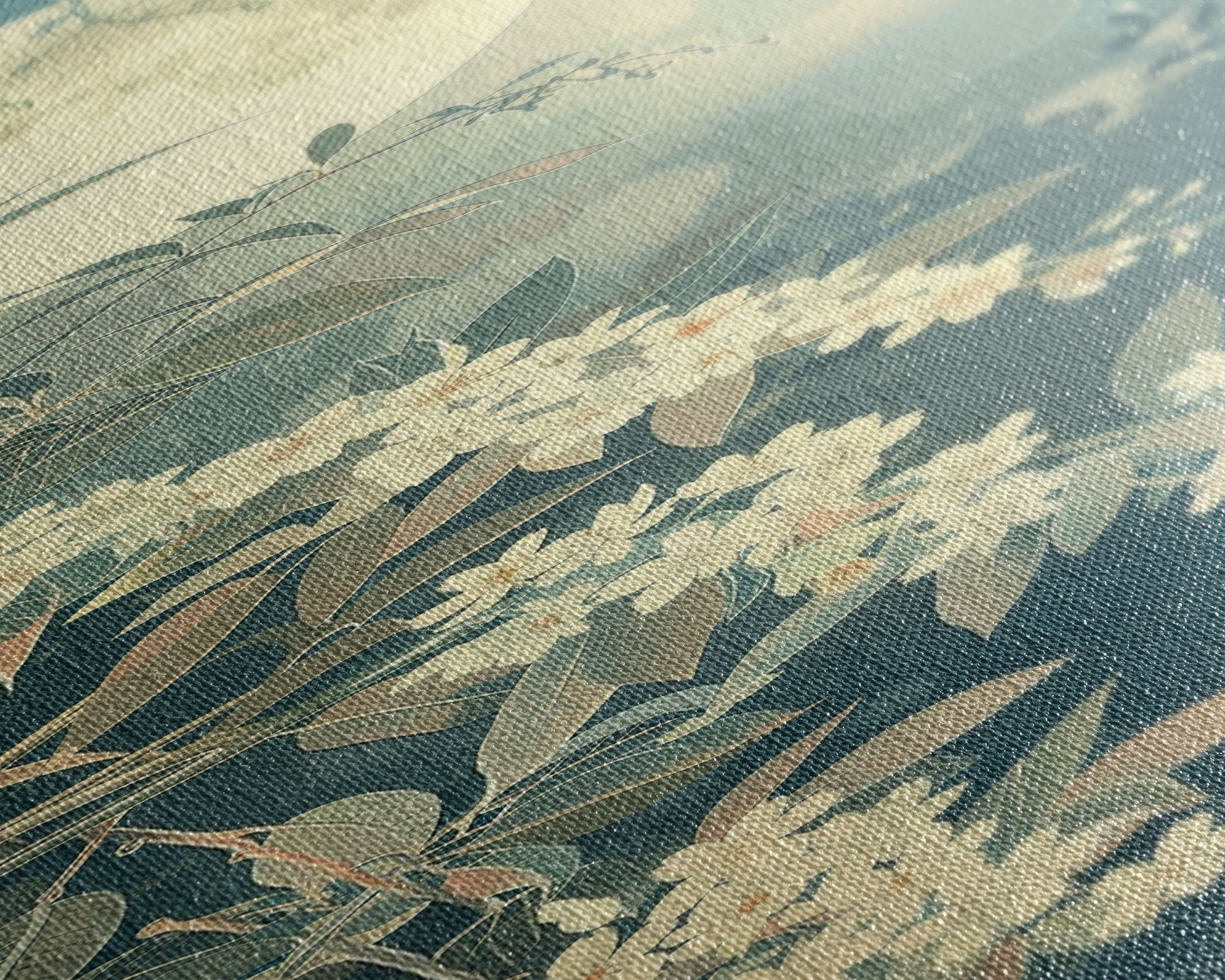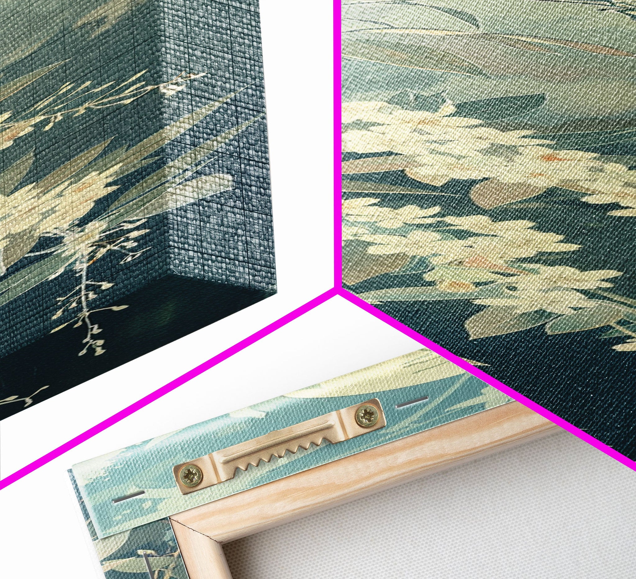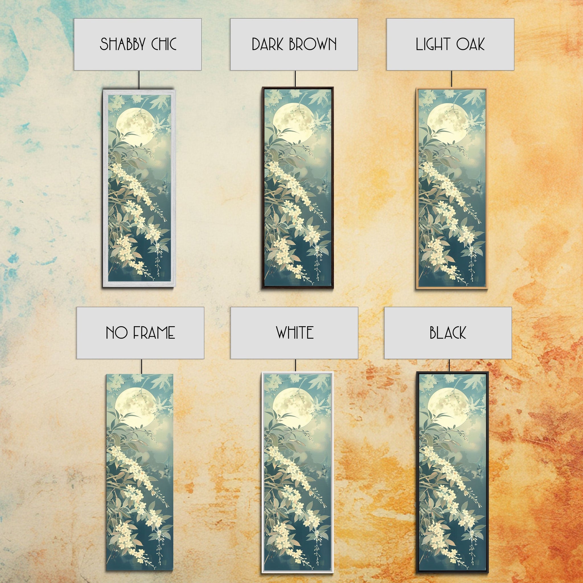 Delicate White Flowers and Full Moon in a Tranquil Night Setting - Skinny Art, Japanese Wall Decor, Framed Canvas Print, Ukiyo-e Style