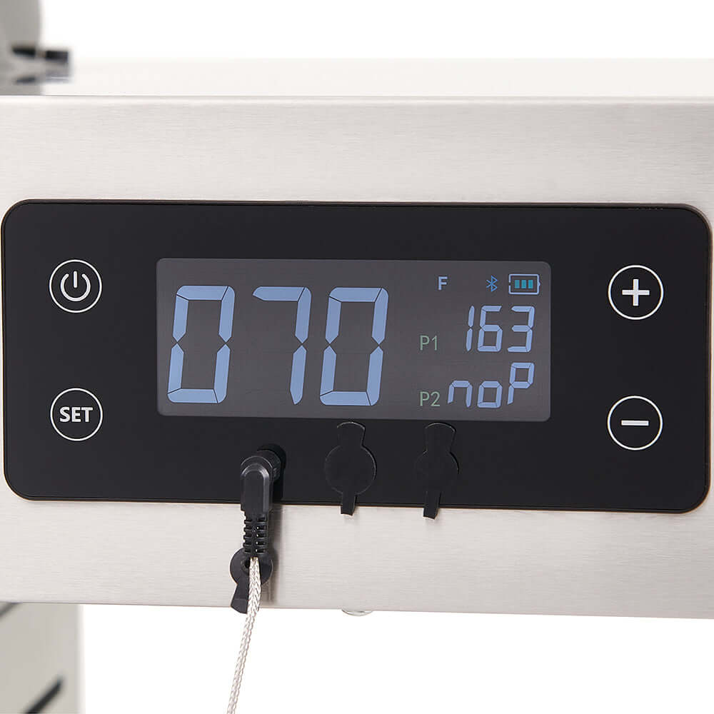 Upgrade your outdoor cooking with the Stainless Steel Denali 405 grill (comes with one probe):