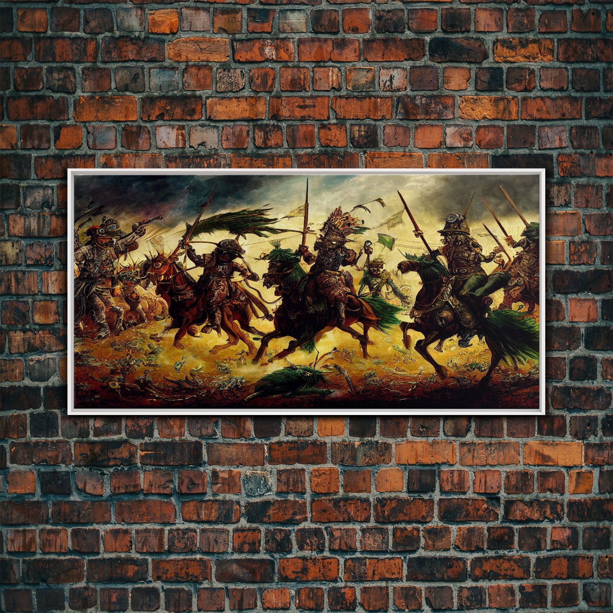 Depiction Of An Ancient Battle, Cool Office Mancave Decor, Wall Decor, Ready To Hang Framed Canvas Print, Oversize Wall Art