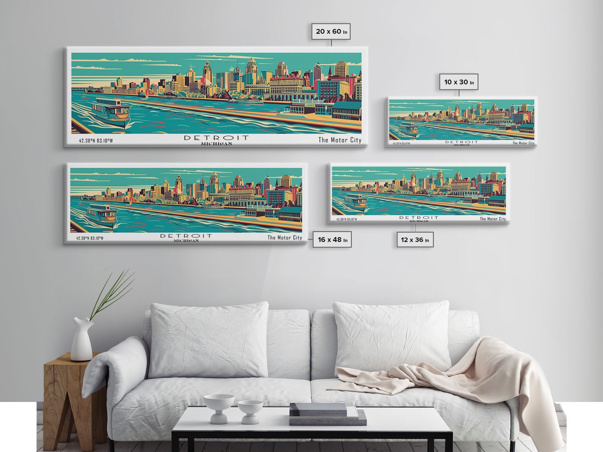 • Load image into Gallery viewer, Detroit Michigan Panoramic Travel Poster Canvas Print