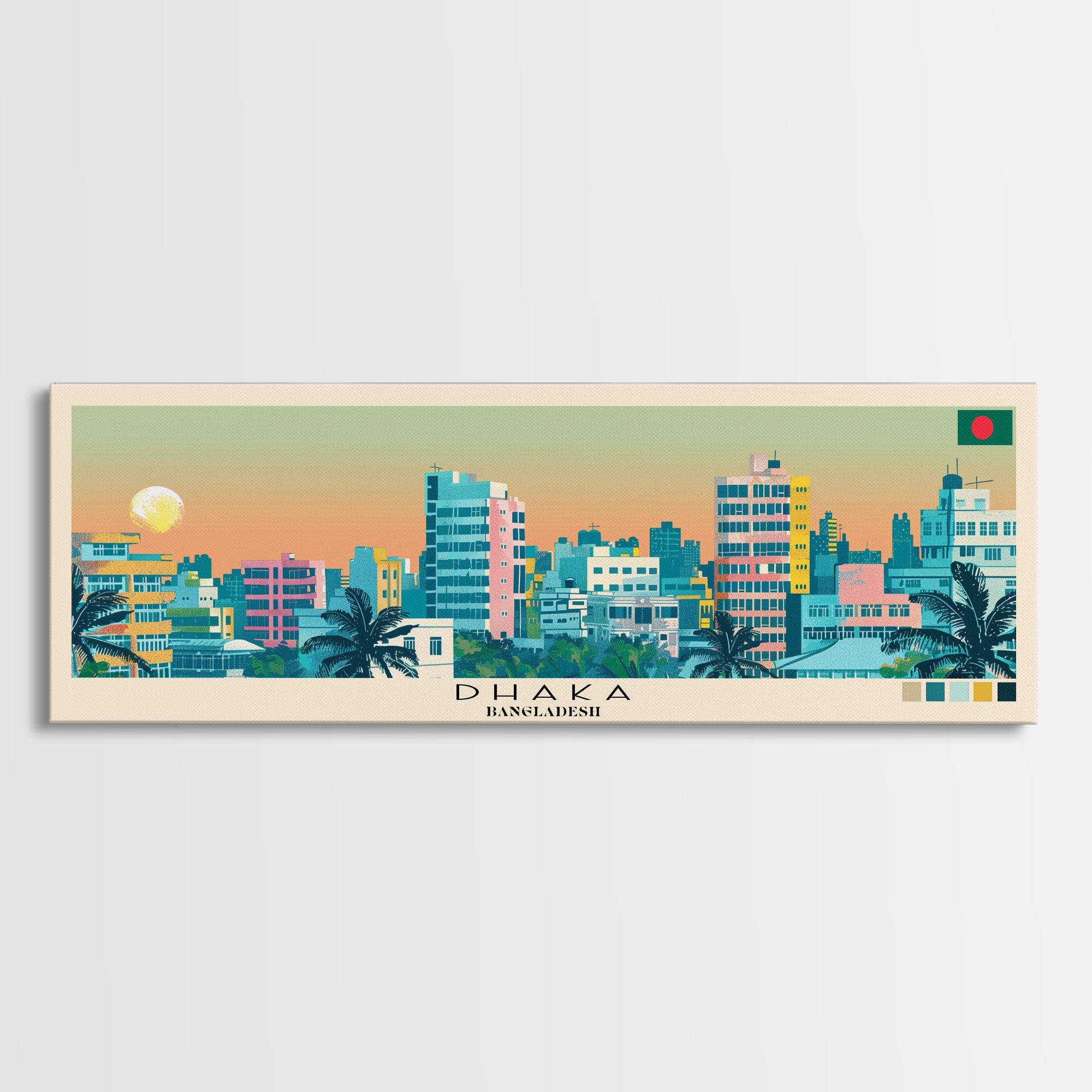 Dhaka, Bangladesh Panoramic Canvas Print, Dhaka, Bangladesh Painting, Bangladesh Art, Dhaka Travel Poster, Travel Art, Guest Room Painting