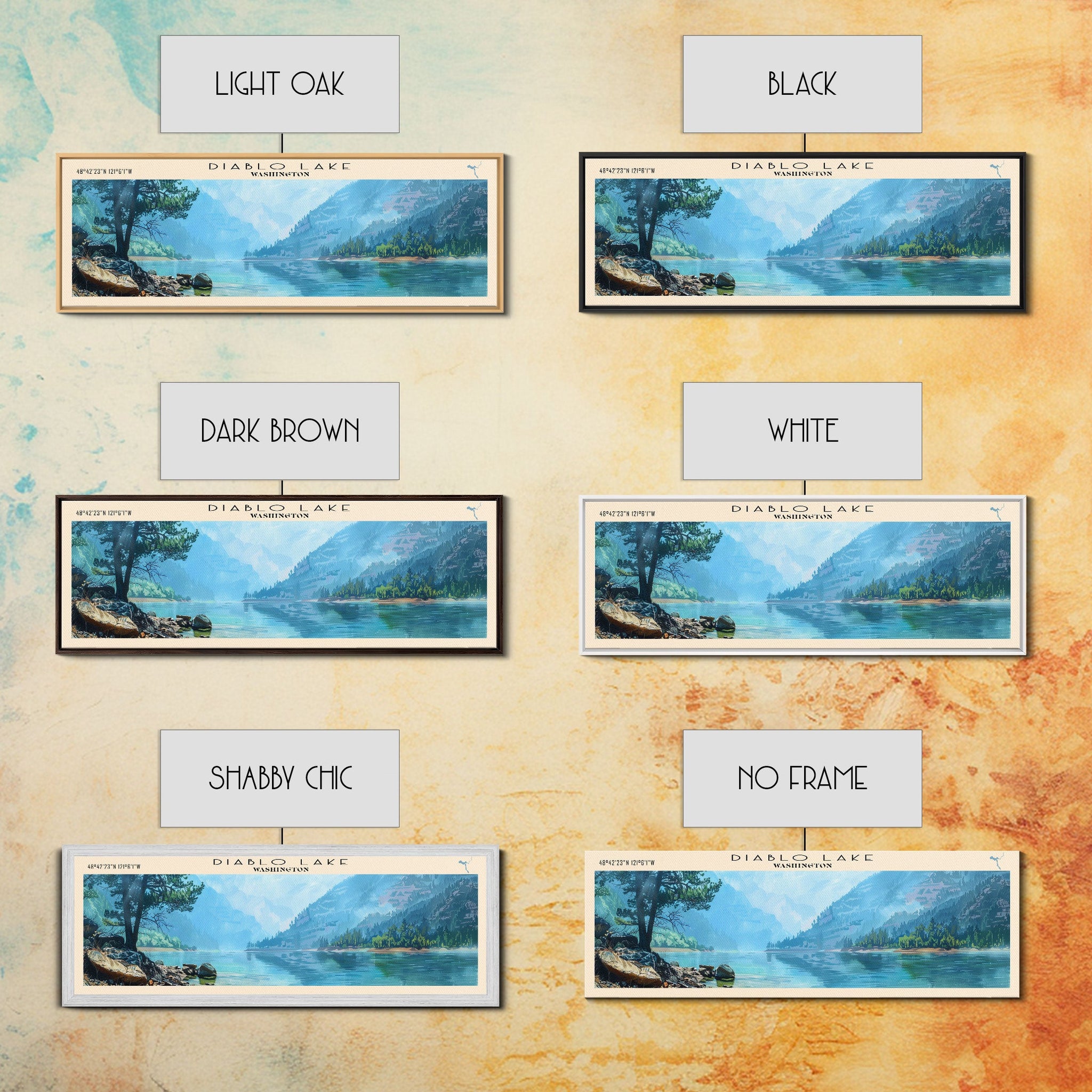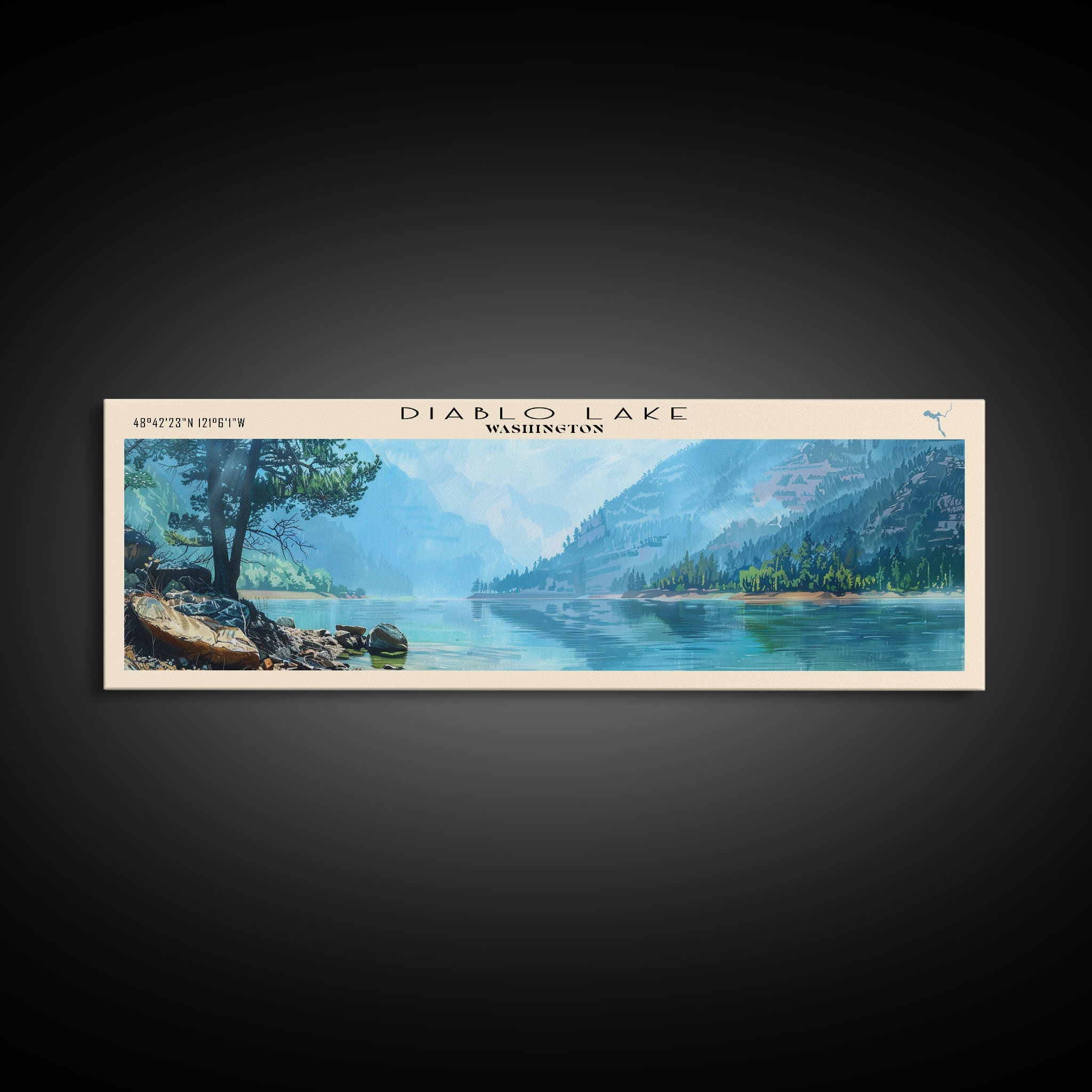 Diablo Lake Washington Framed Canvas Print, Lake House Art, Panoramic Wall Art, Travel Poster, Minimalist Lake Painting, Home Decor