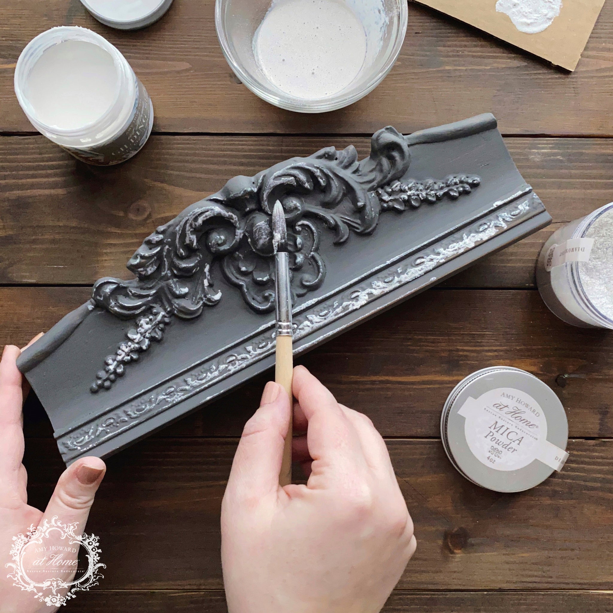 Inspired from Amy’s time in Italy, Toscana Milk Paint allows you to easily recreate the historic patina found on European antiques. When paired with your favorite Mica Powder you can create brand new colors and enhance the naturally dramatic effect of this old world finish with metallic essence.
