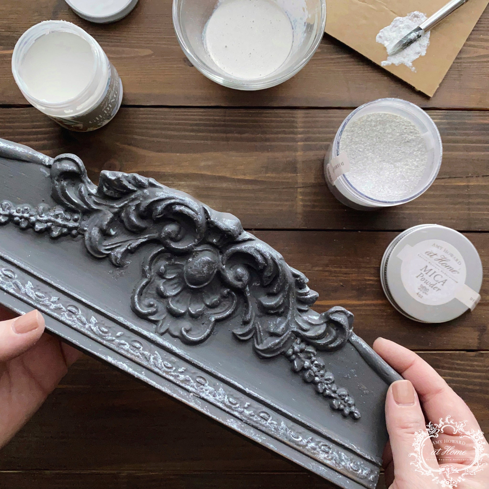 Mica Powder adds even more intensity and drama to Toscana Milk Paint’s old world look by providing a pearly, metallic finish. Mica Powder can be used for several other processes, like creating a custom metallic wax or making an antique mirror appear Eglomisé or glass-gilded.