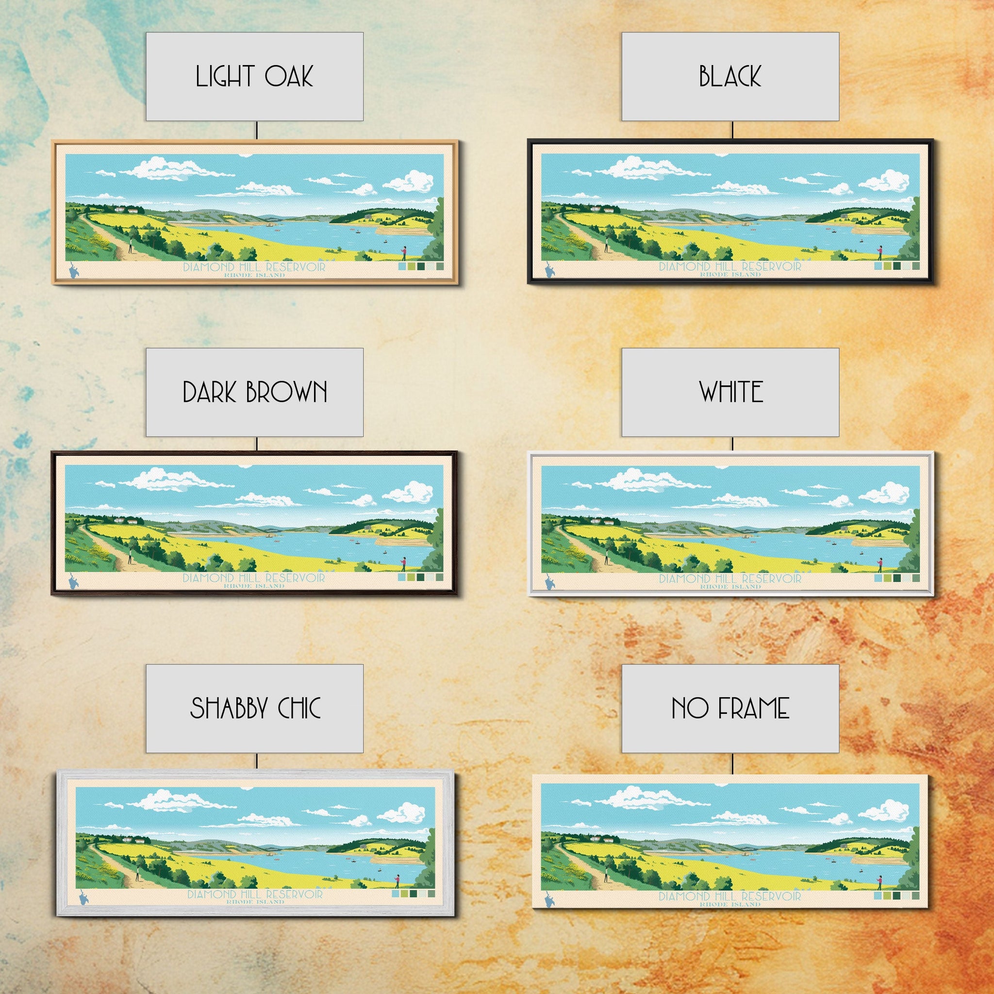 Diamond Hill Reservoir Rhode Island Framed Canvas Print, Midcentury Modern Panoramic Wall Art, Living Room Decor, Pop Art, Travel Poster Art, Scenic Nature Painting