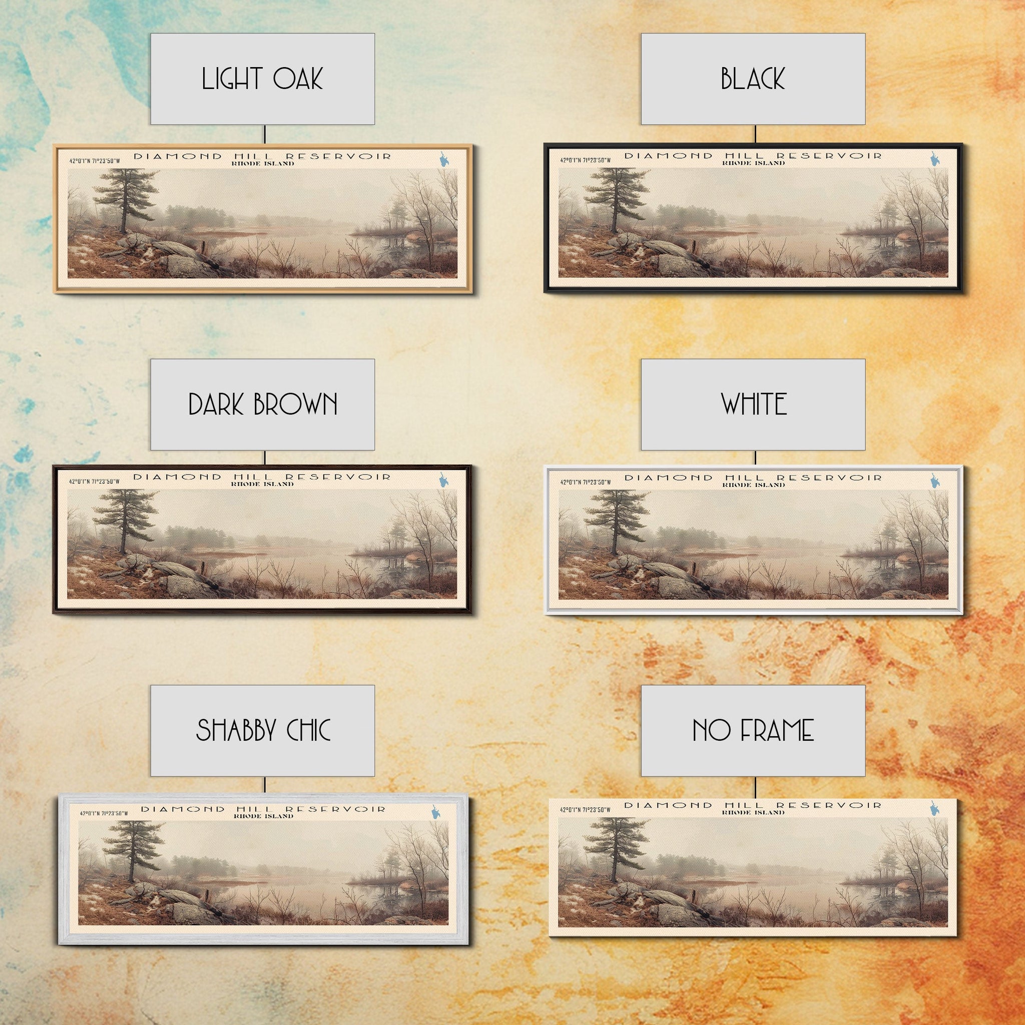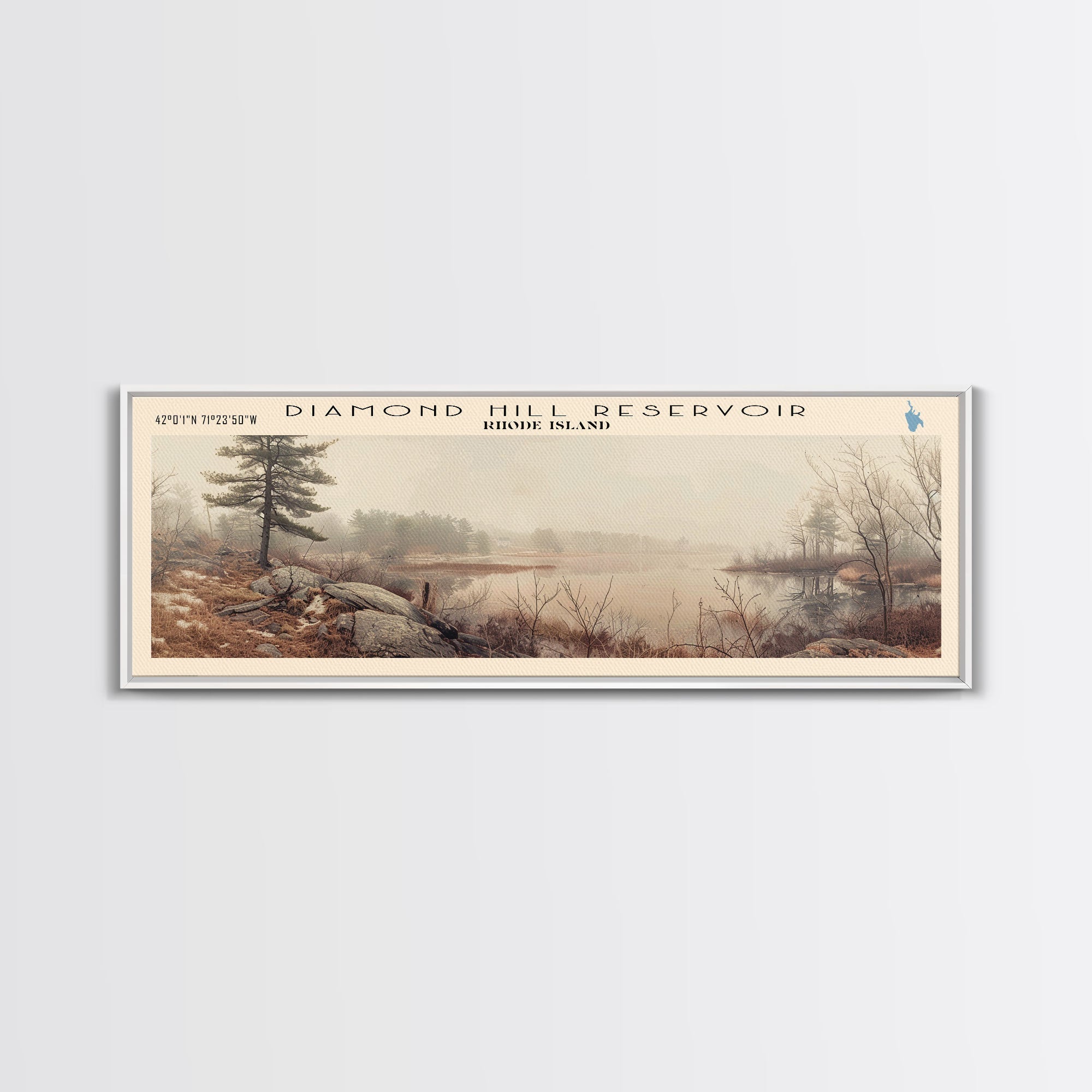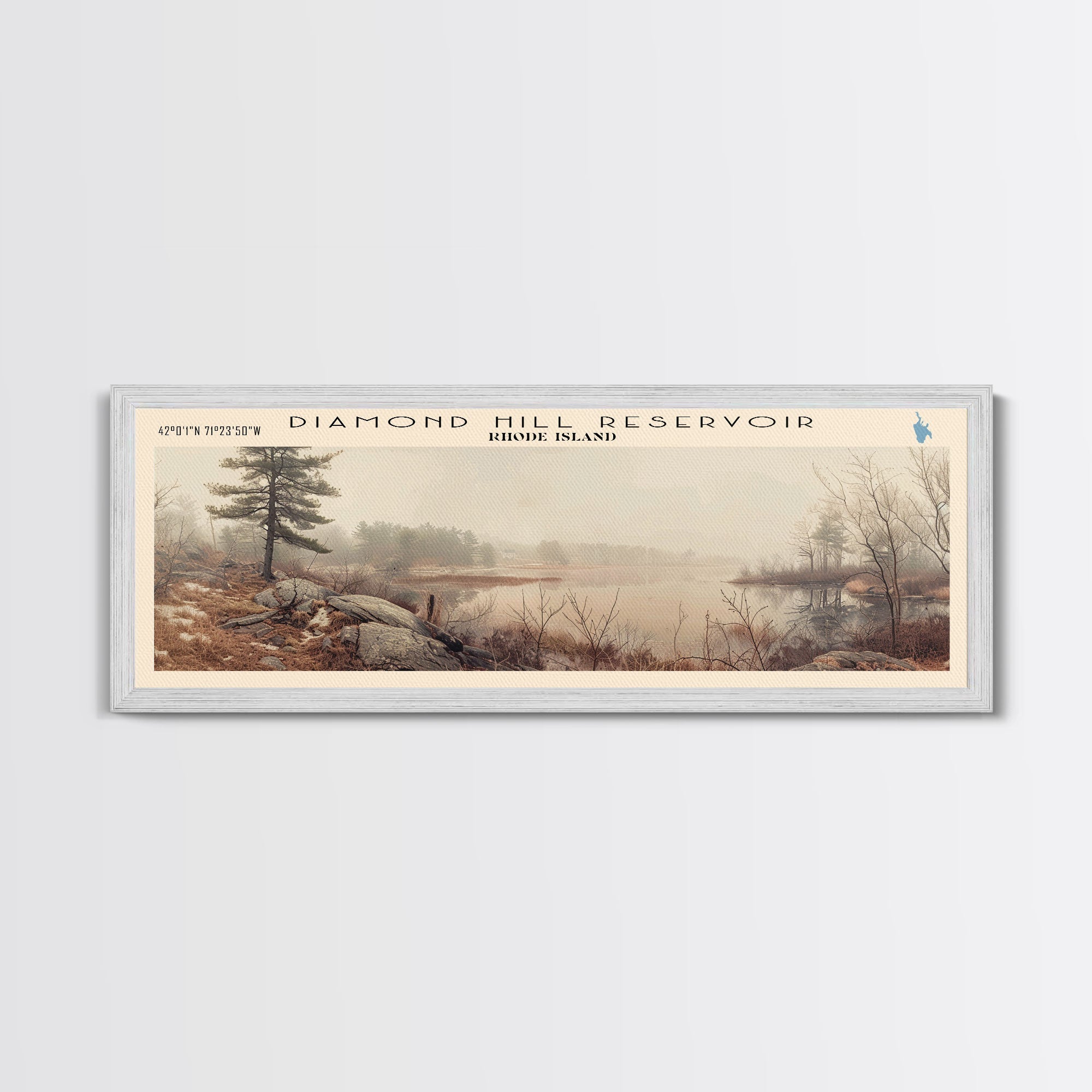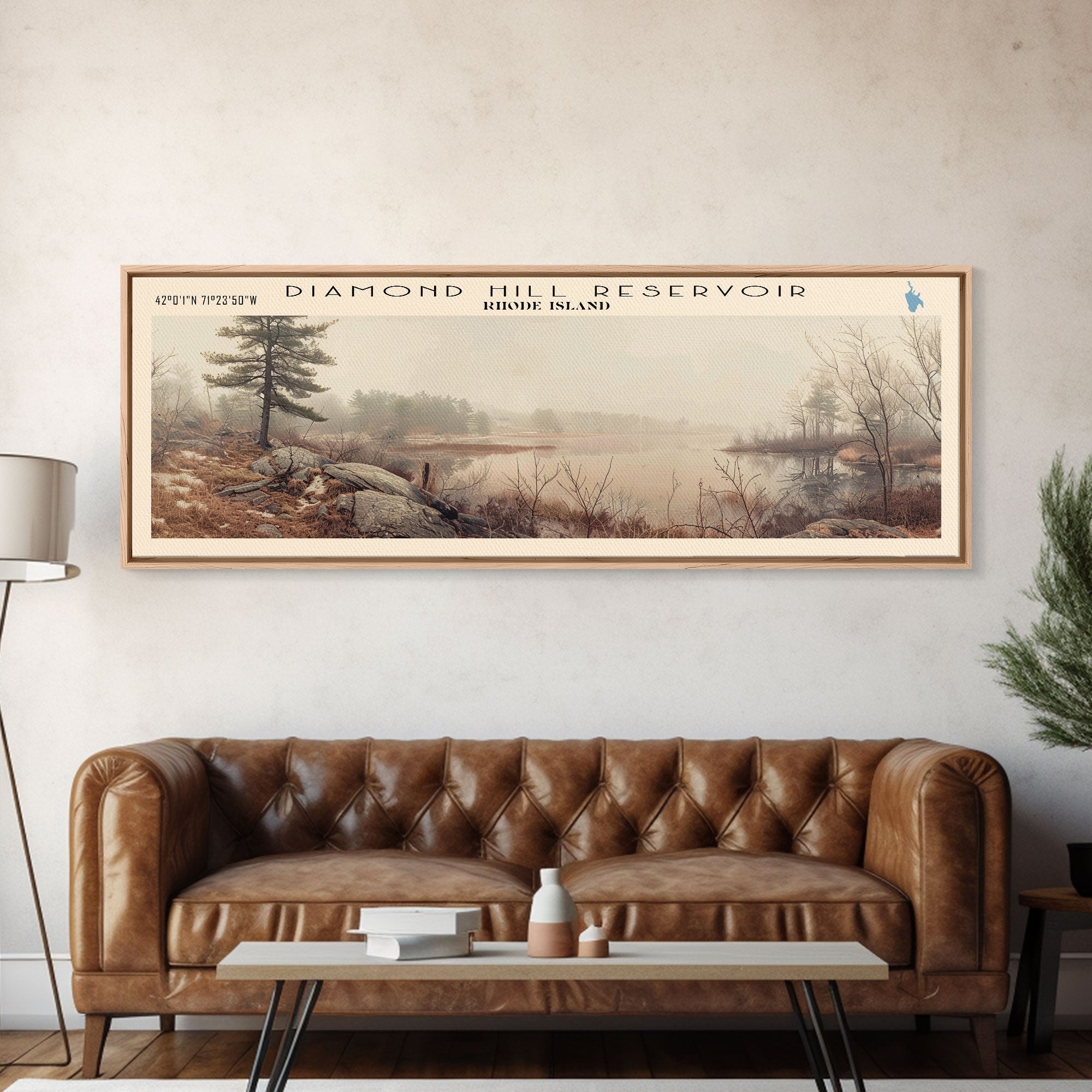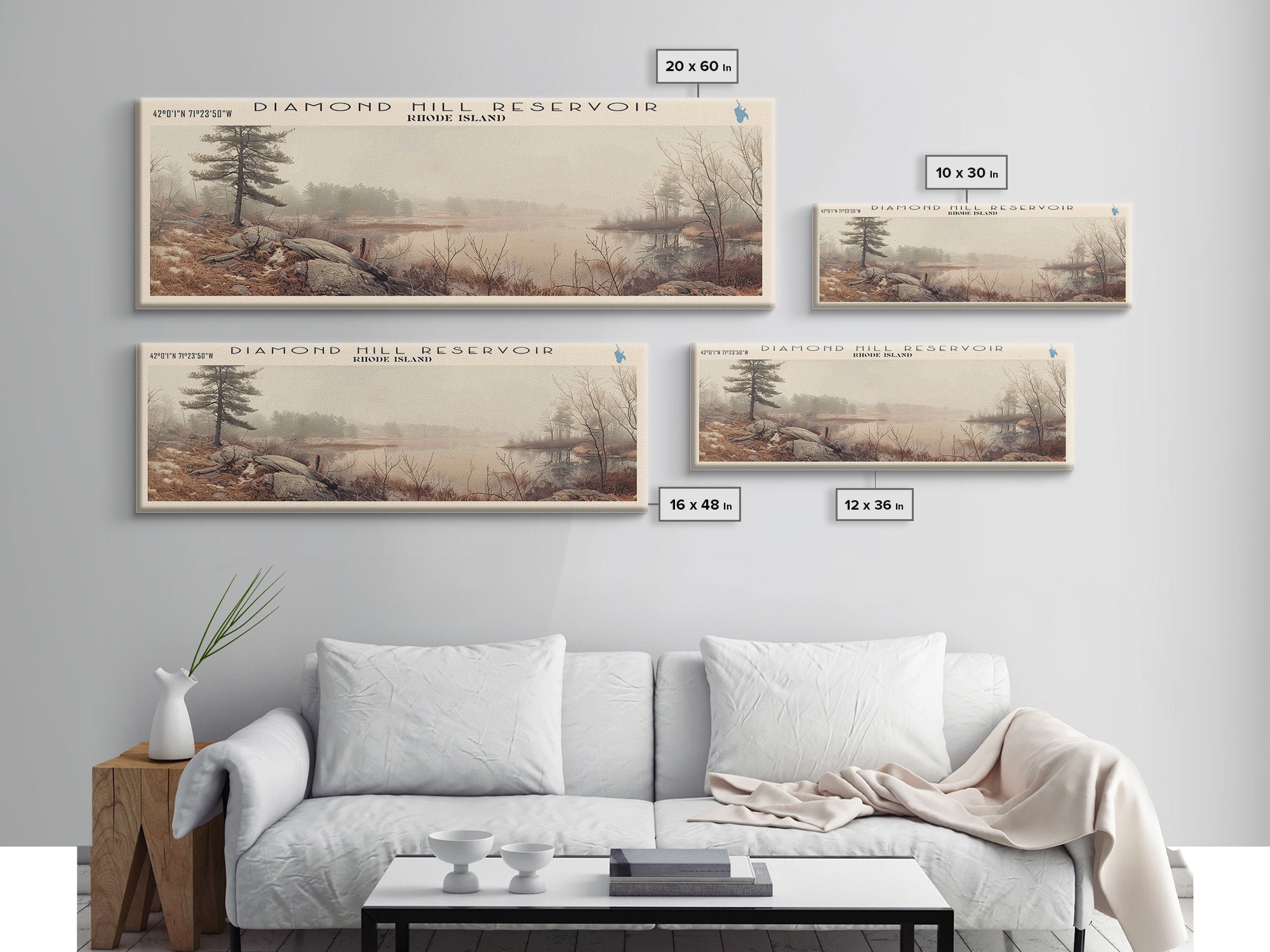 Diamond Hill Reservoir Rhode Island Framed Canvas Print, Panoramic Lake House Decor, Wall Art, Travel Poster, Rustic Lake Painting, Nature Art