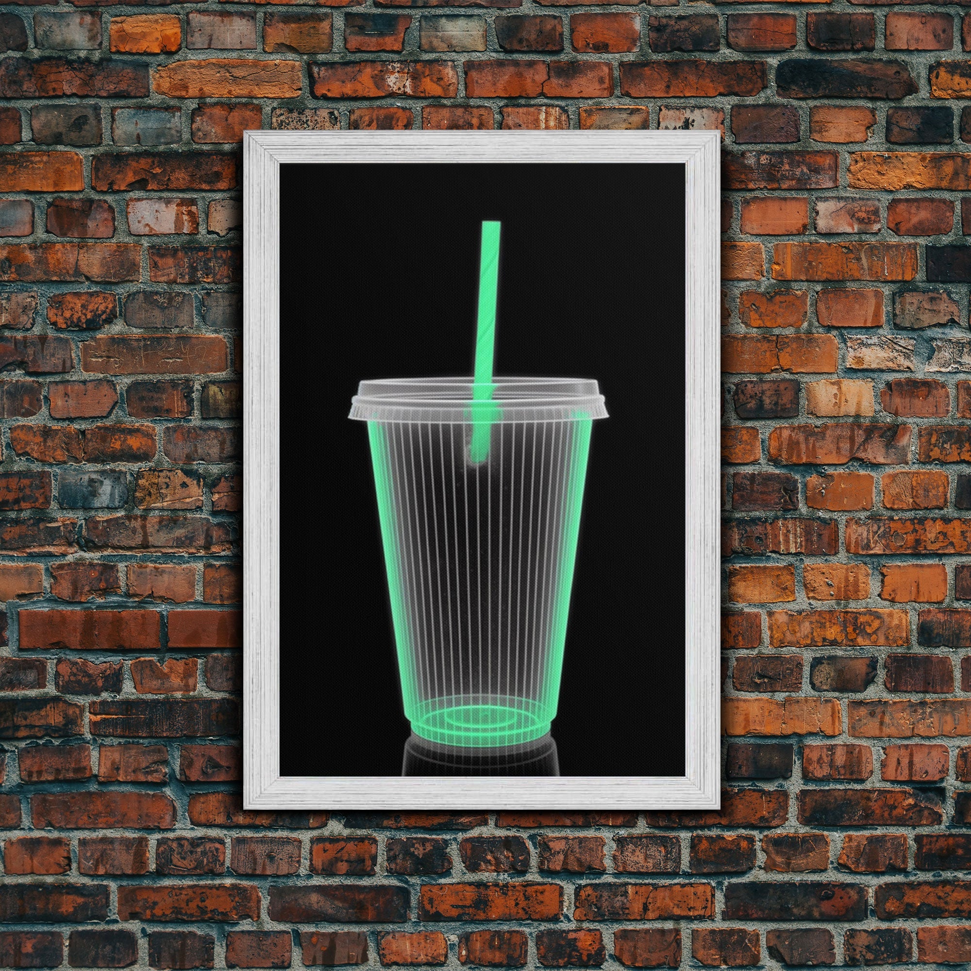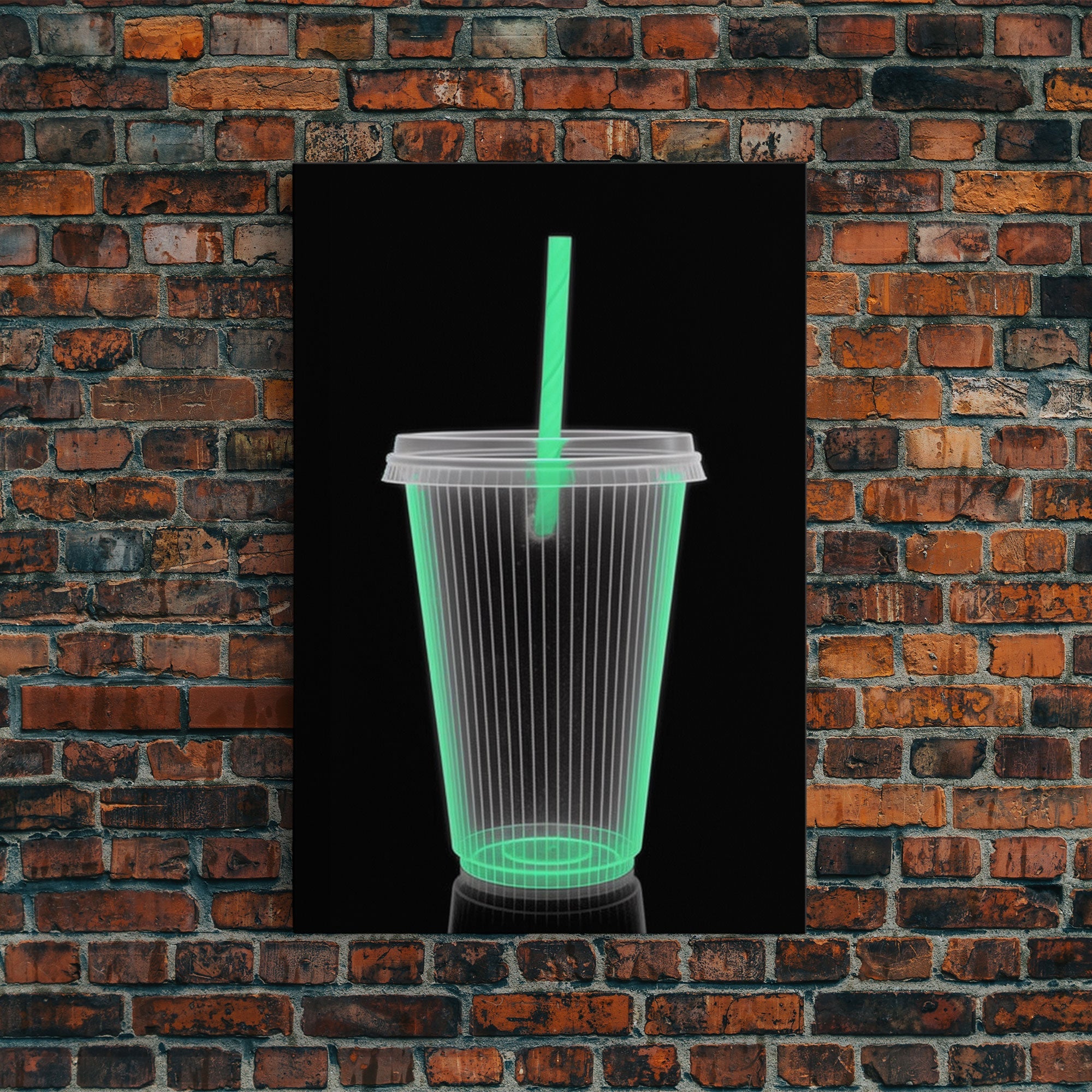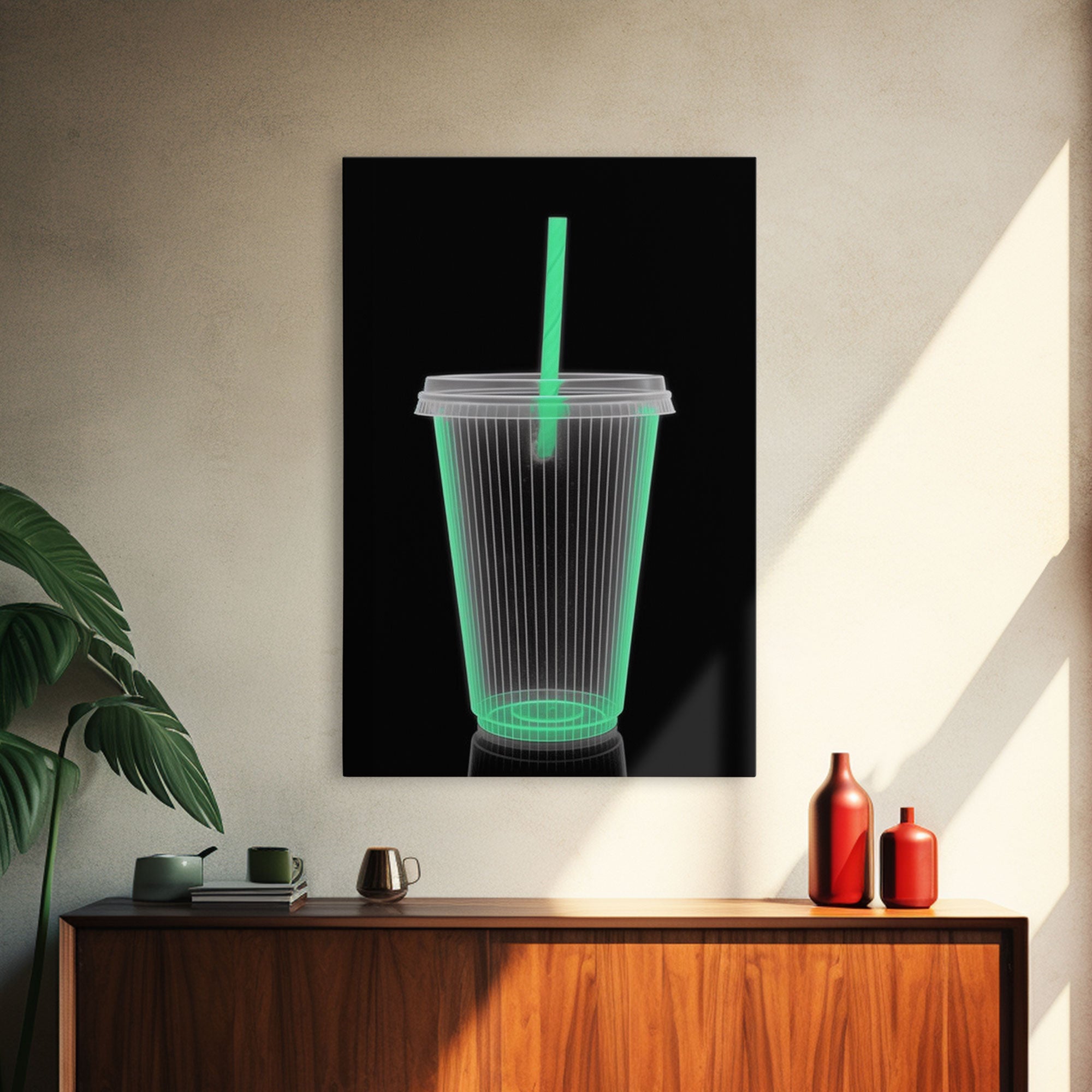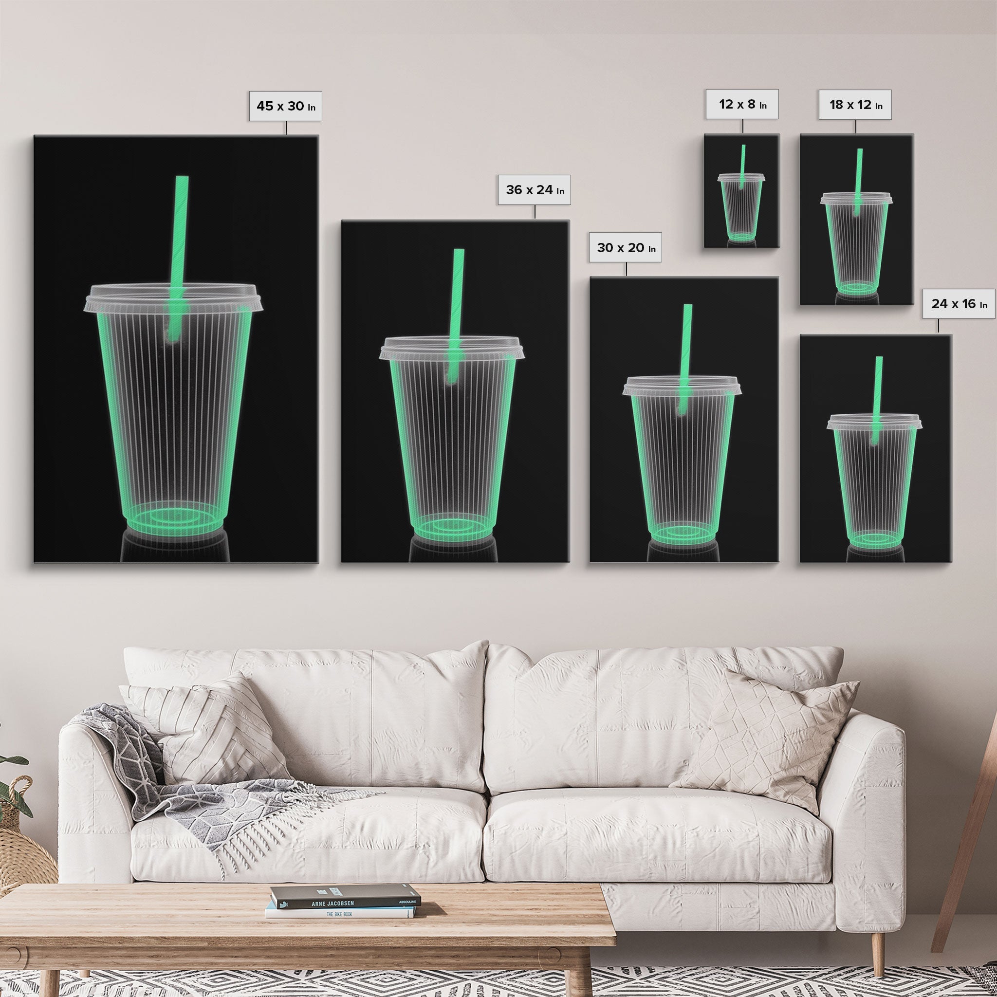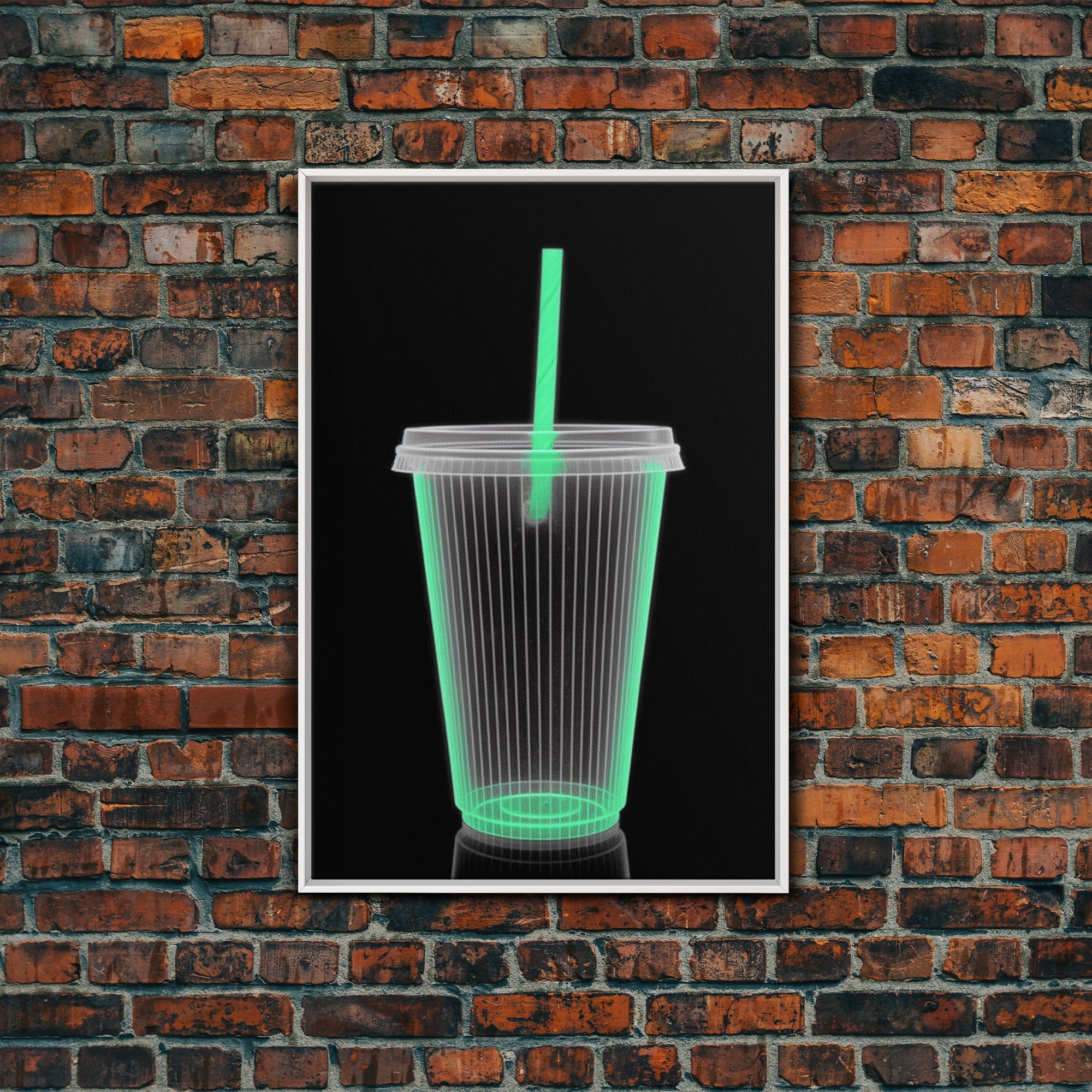 Disposable Plastic Cup Wall Art, Green Cup, Kitchen Wall Art, Minimalist Print, Wall Decor, Canvas Print, Wall Art, Framed Canvas