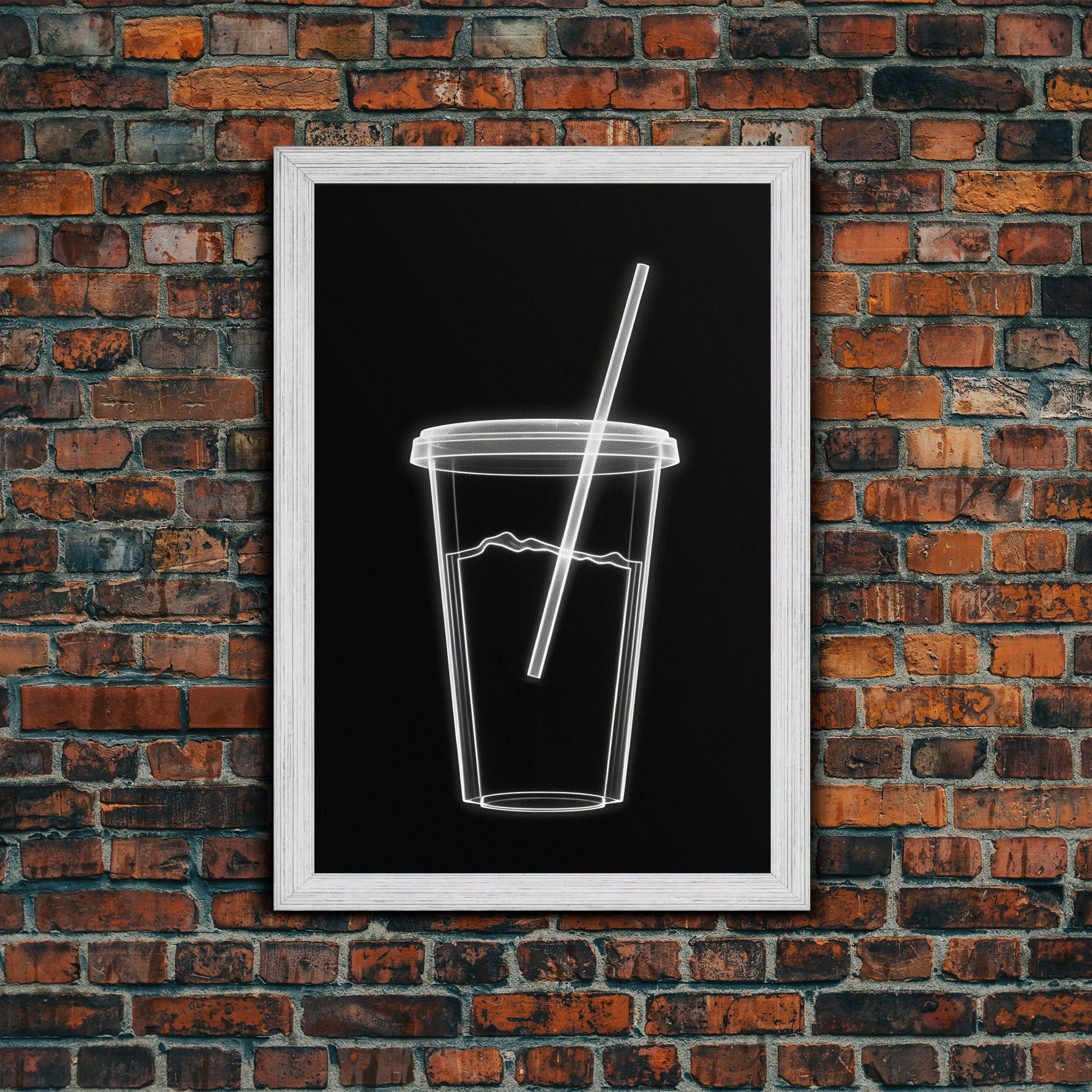 Disposable Plastic Cup Wall Art, Kitchen Wall Art, Cup With Straw, Minimalist Print, Wall Decor, Canvas Print, Wall Art, Framed Canvas