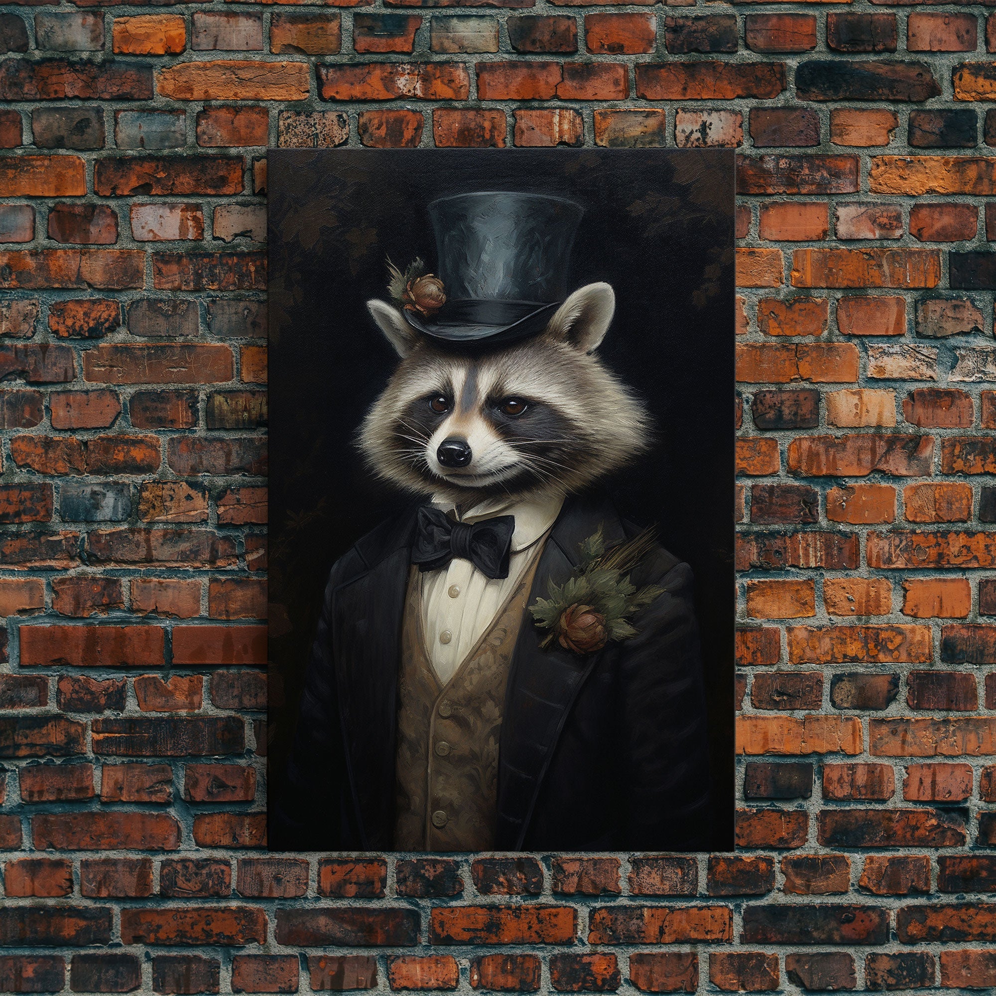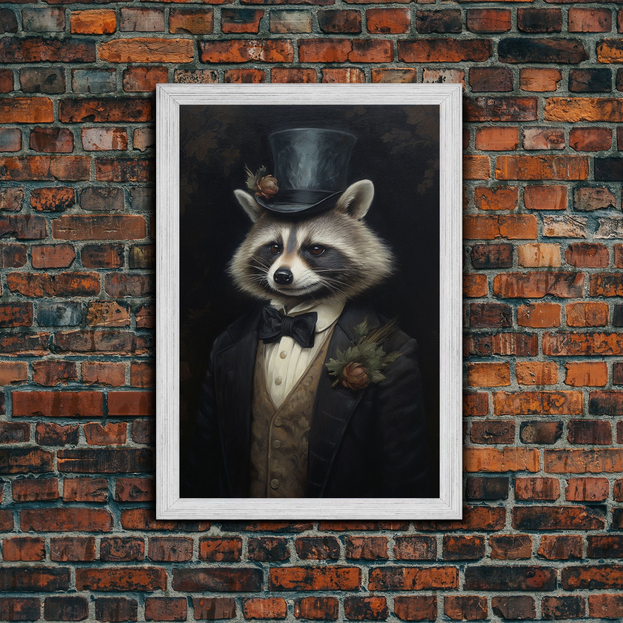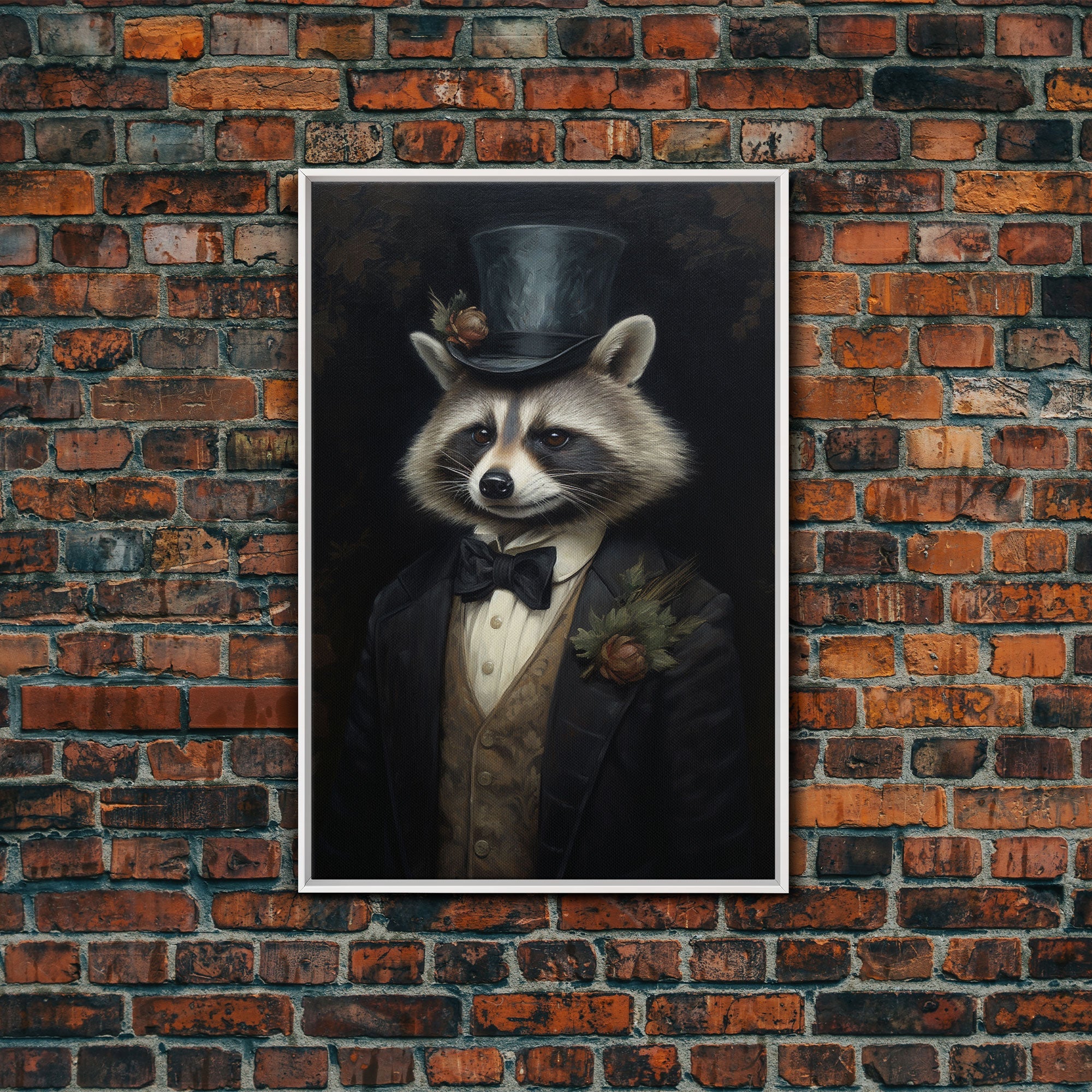 Distinguished Dapper Gentleman Raccoon, Funny Animal Prints, Humorous Art, Framed Canvas, Wall Art, Canvas Print, Funny Halloween Decor