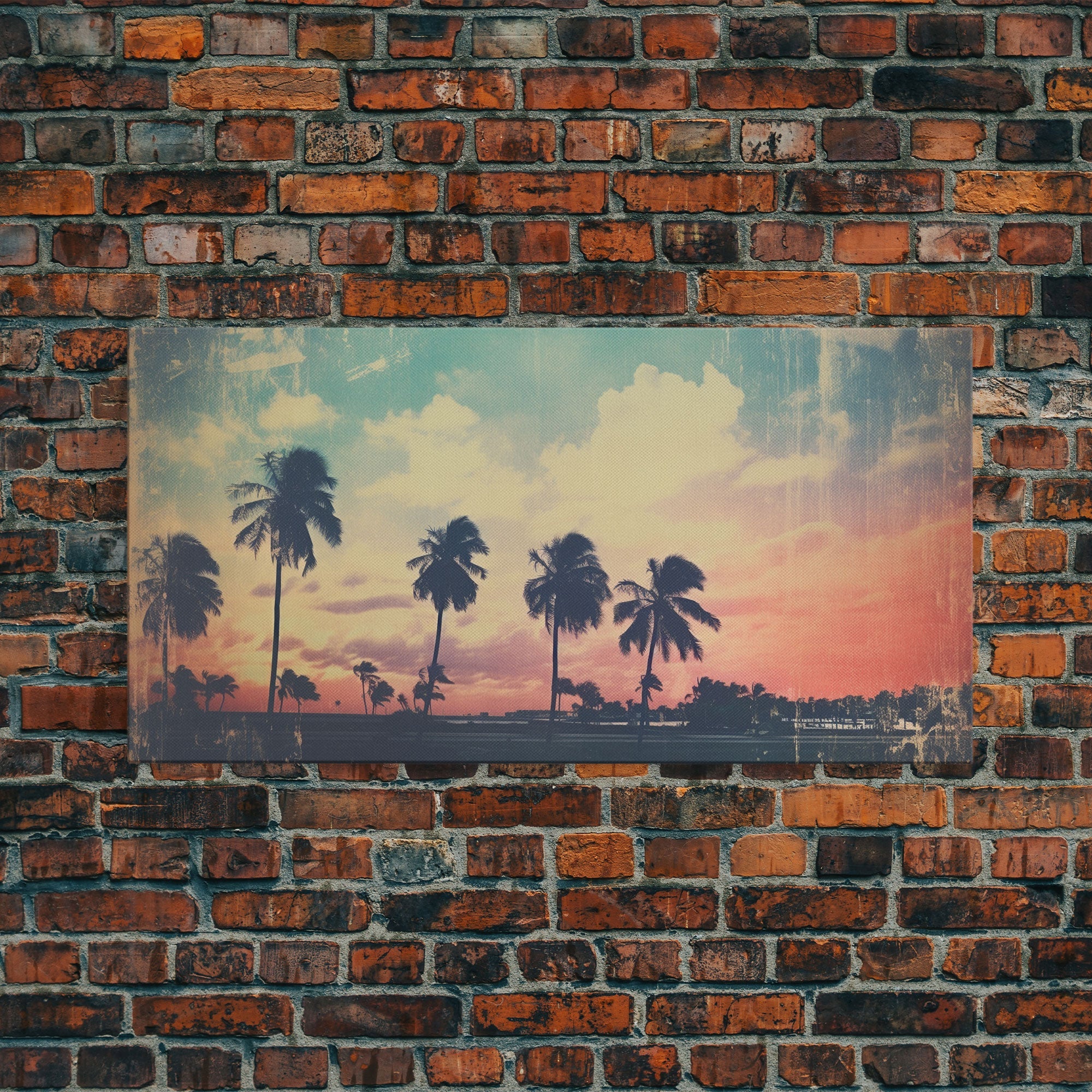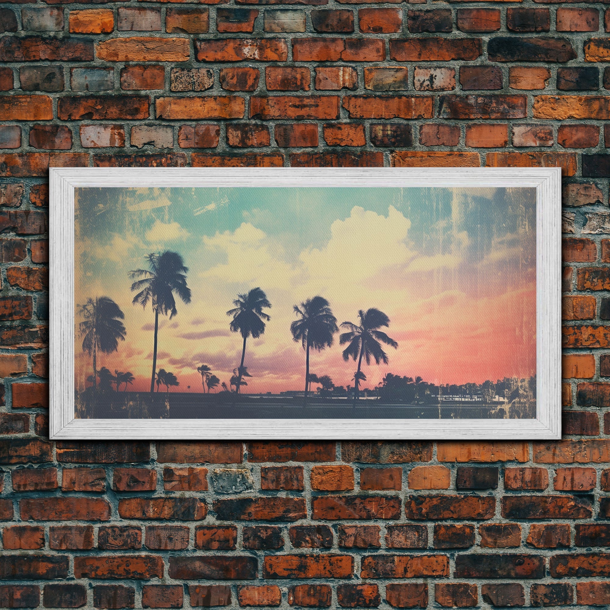 Distressed Old Photo Of Miami Beaches In the 1980s - Framed Canvas Print - Photography Print - Vaporwave Aesthetic Wall Art
