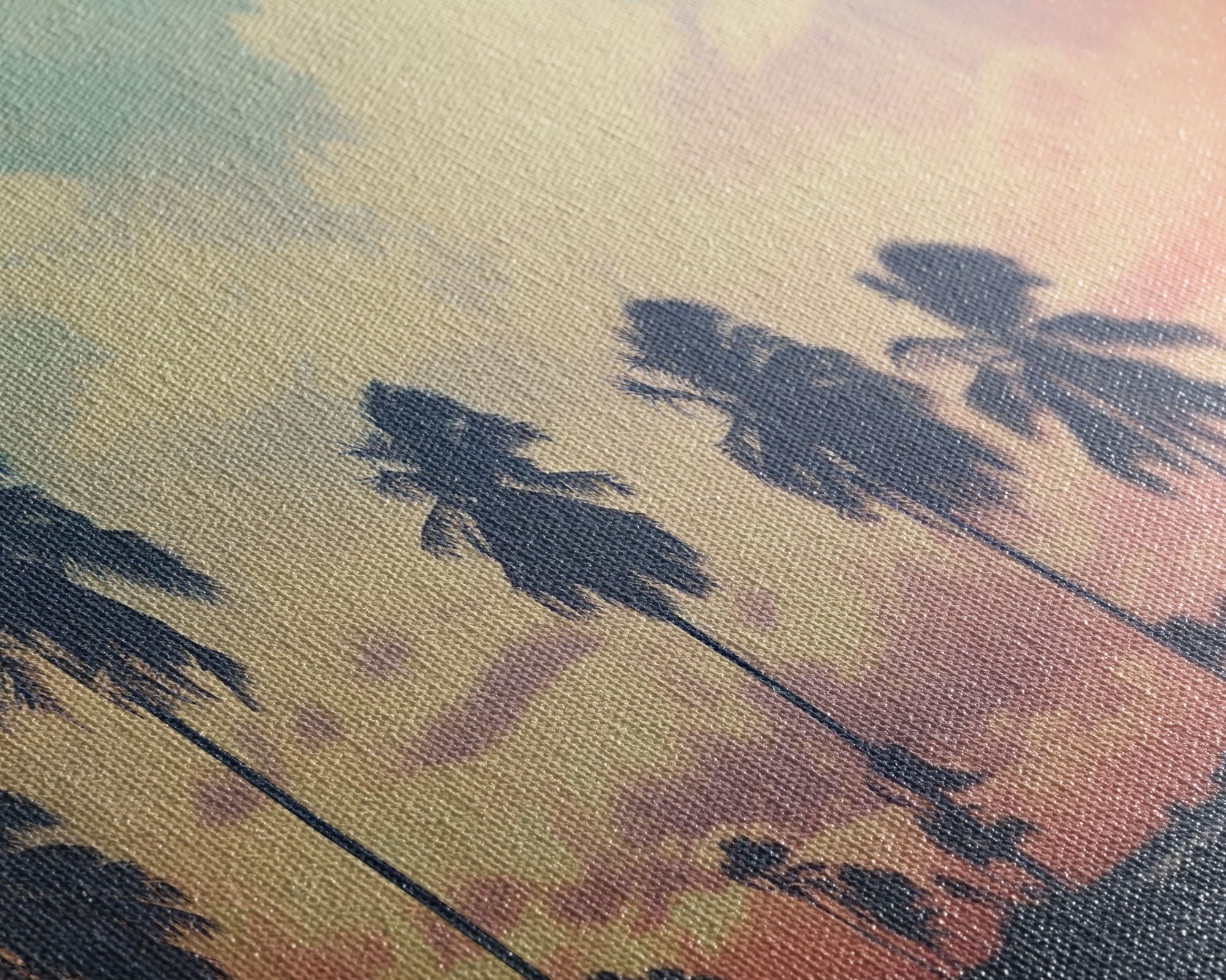 Most of our canvases are made in the USA, with the exception of canvases ordered with the light oak unstained frames, and any large canvases (24x48, 30x60, 16x48 and 20x60) ordered WITH a frame. These are temporarily made in and shipped from Europe, while we try to find a more consistent supplier in the USA.