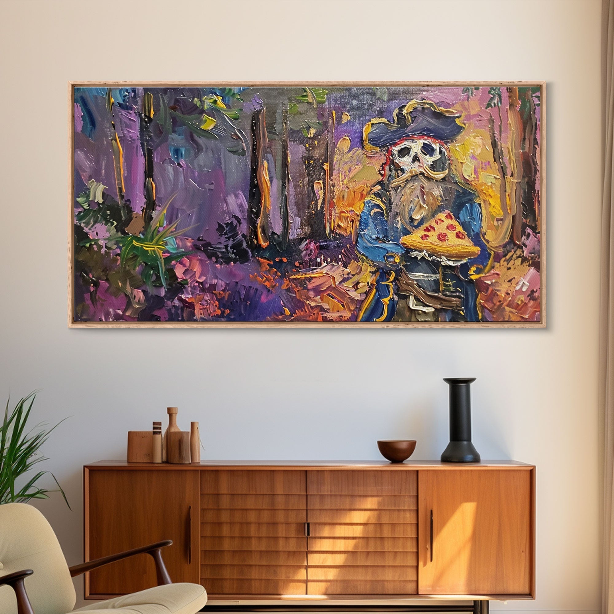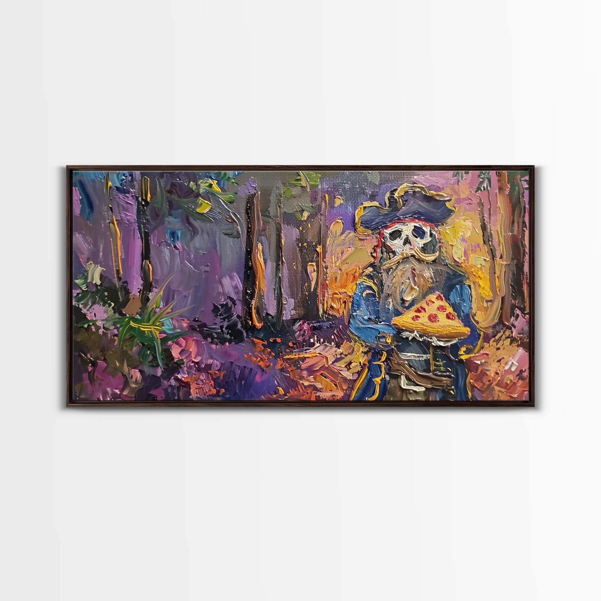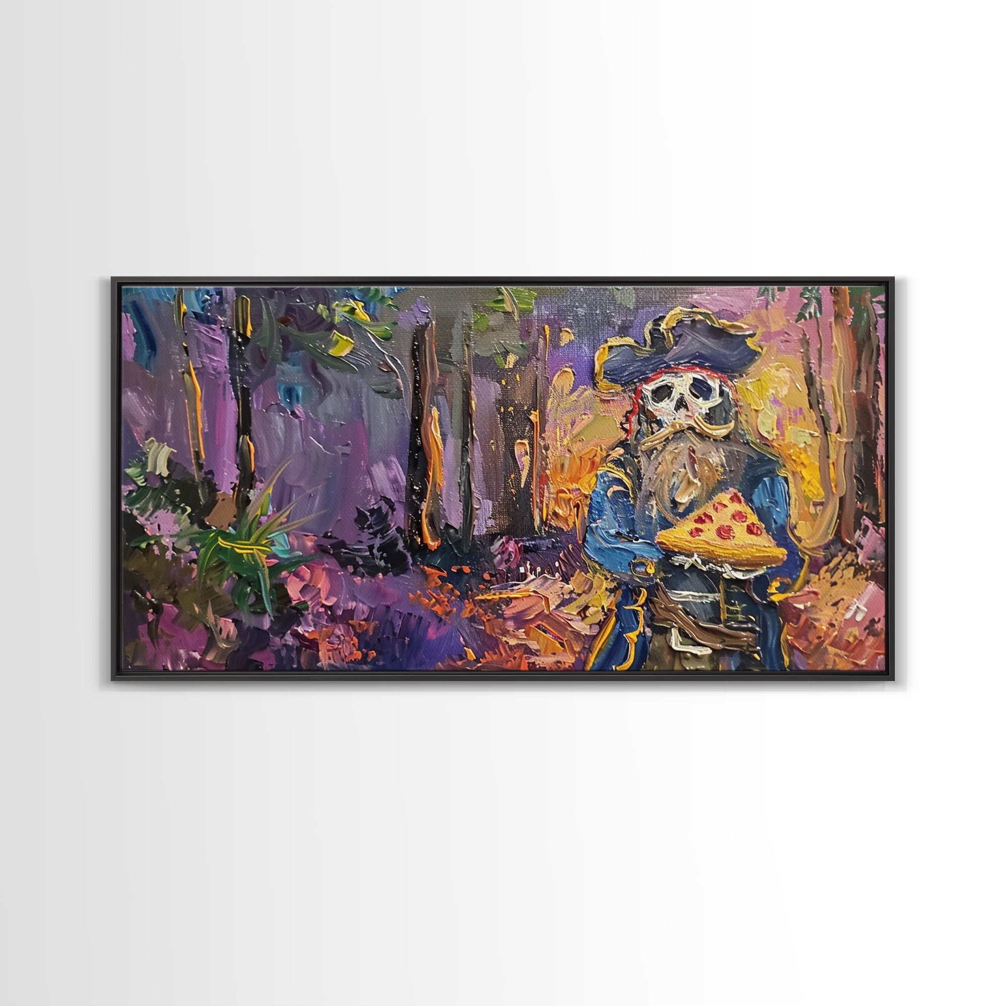 Do Ghost Pirates Eat Pizza? The Answer is Yes. Funny Halloween Wall Art, Framed Canvas Print