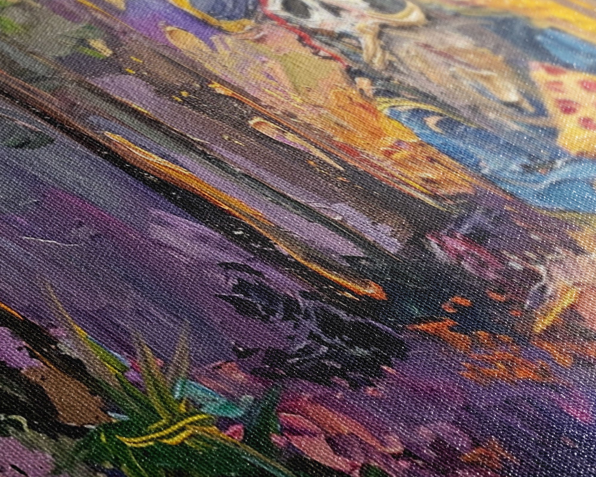 Most of our canvases are made in the USA, with the exception of canvases ordered with the light oak unstained frames, and any large canvases (24x48, 30x60, 16x48 and 20x60) ordered WITH a frame. These are temporarily made in and shipped from Europe, while we try to find a more consistent supplier in the USA.