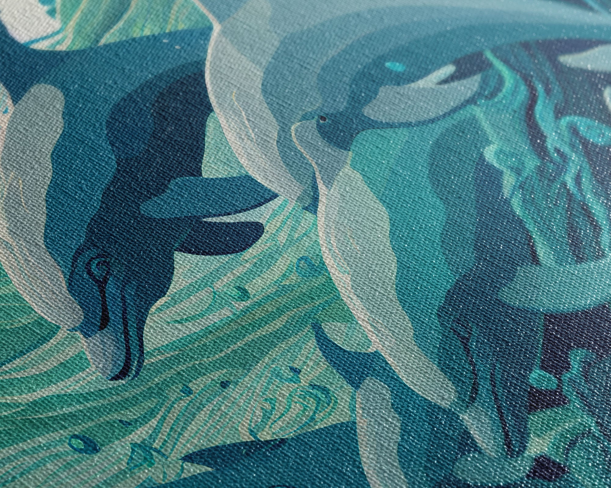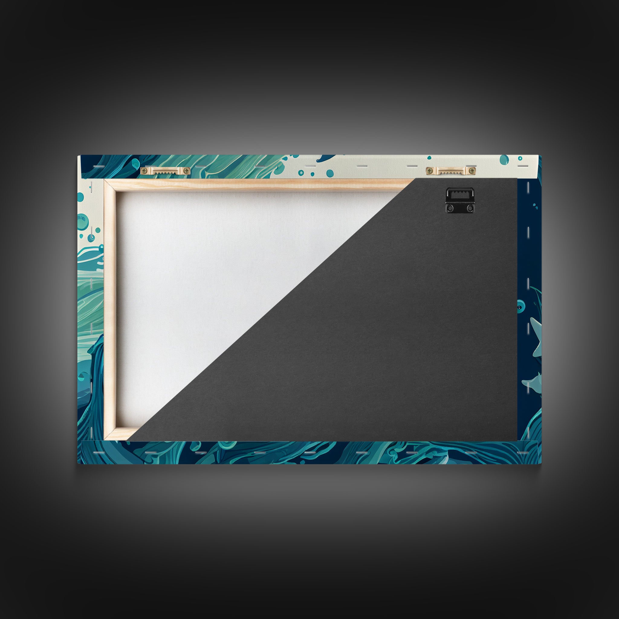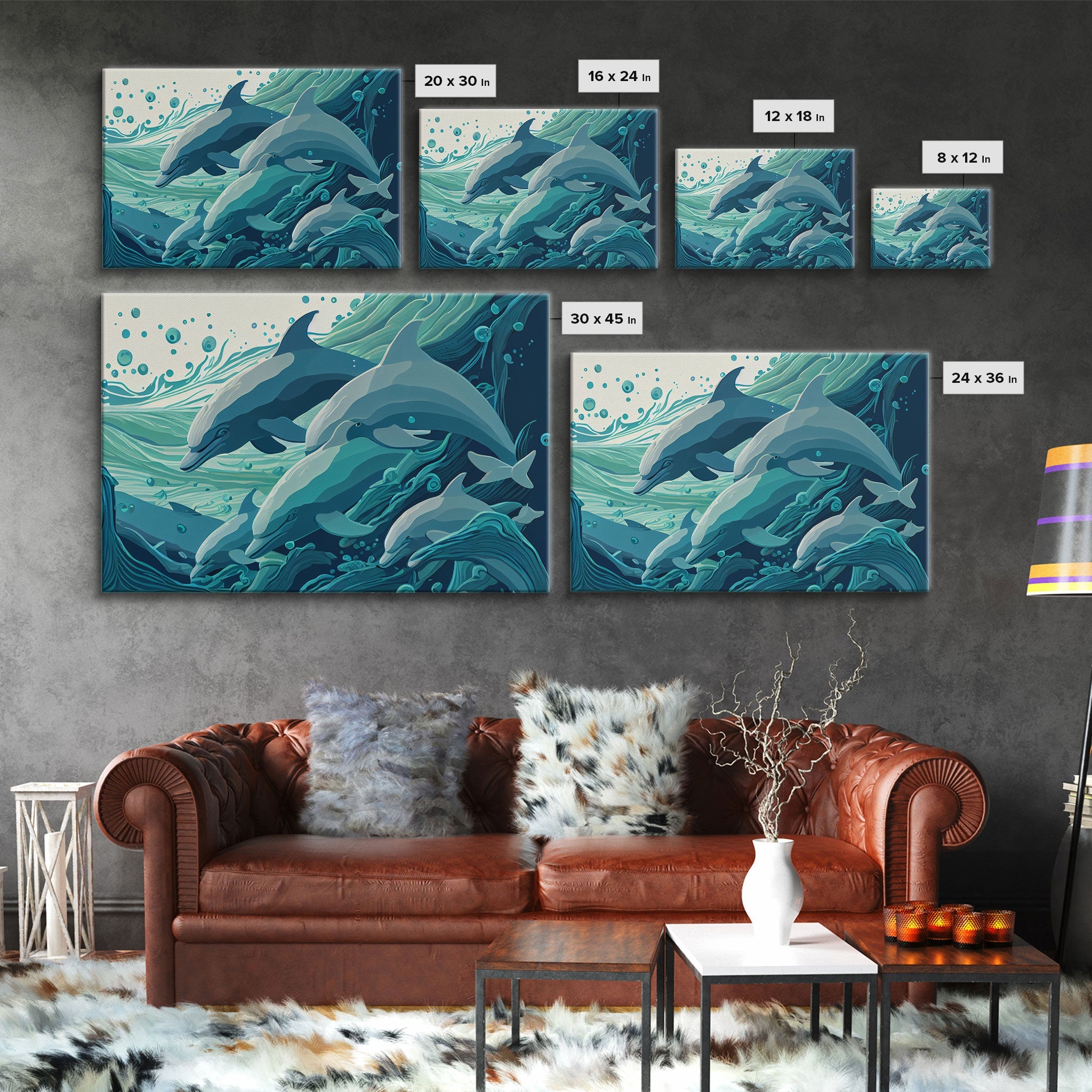 Dolphins in the Ocean, Turquoise dolphin art, framed canvas print, wall art with frame