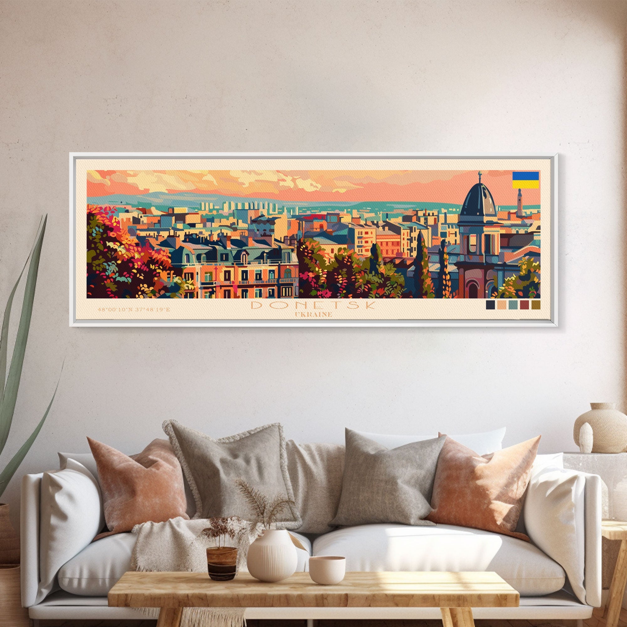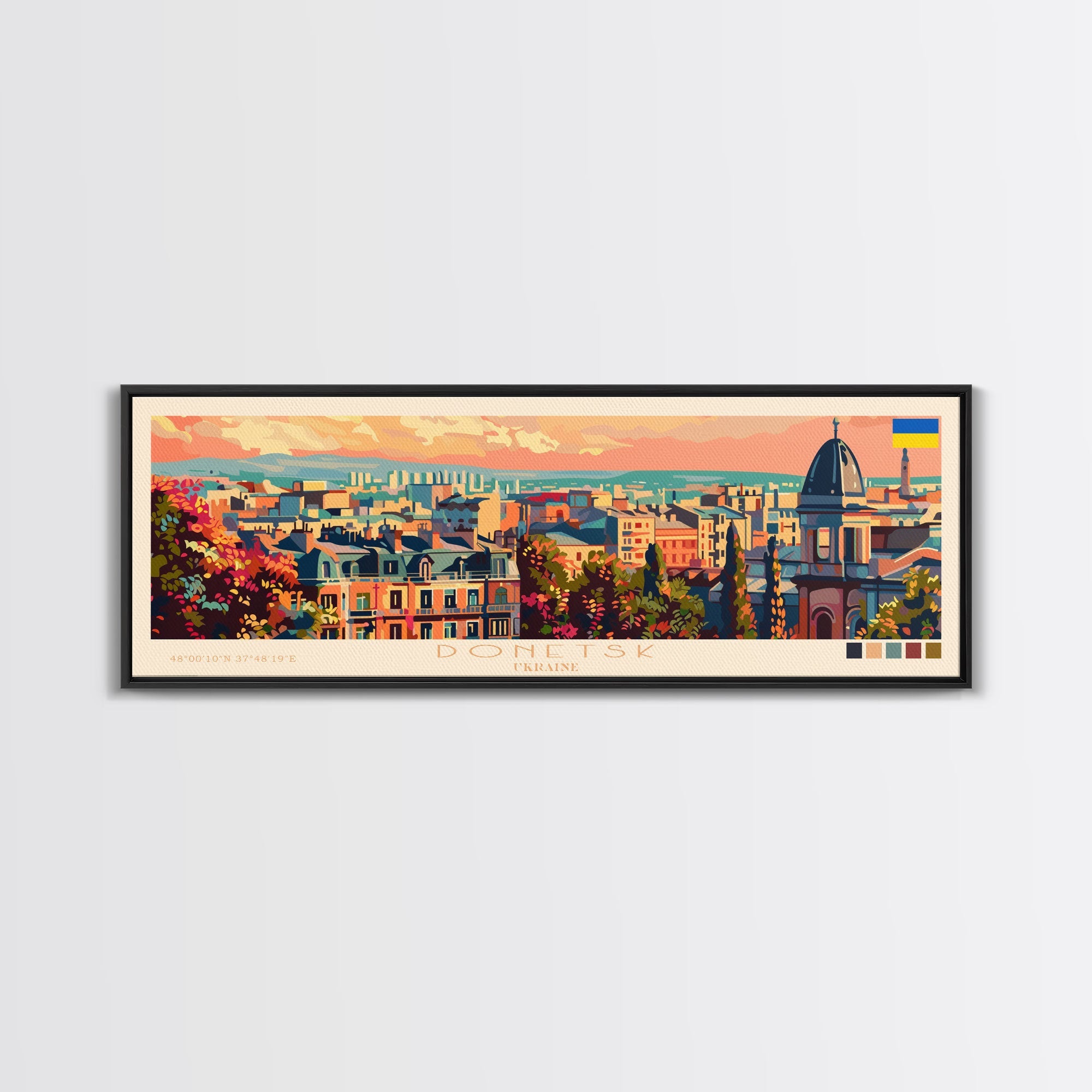 Donetsk Ukraine Panoramic Travel Poster, Framed Canvas Print or Metal Wall Art, Travel Art, Home Decor, Panoramic Painting, Midcentury Art