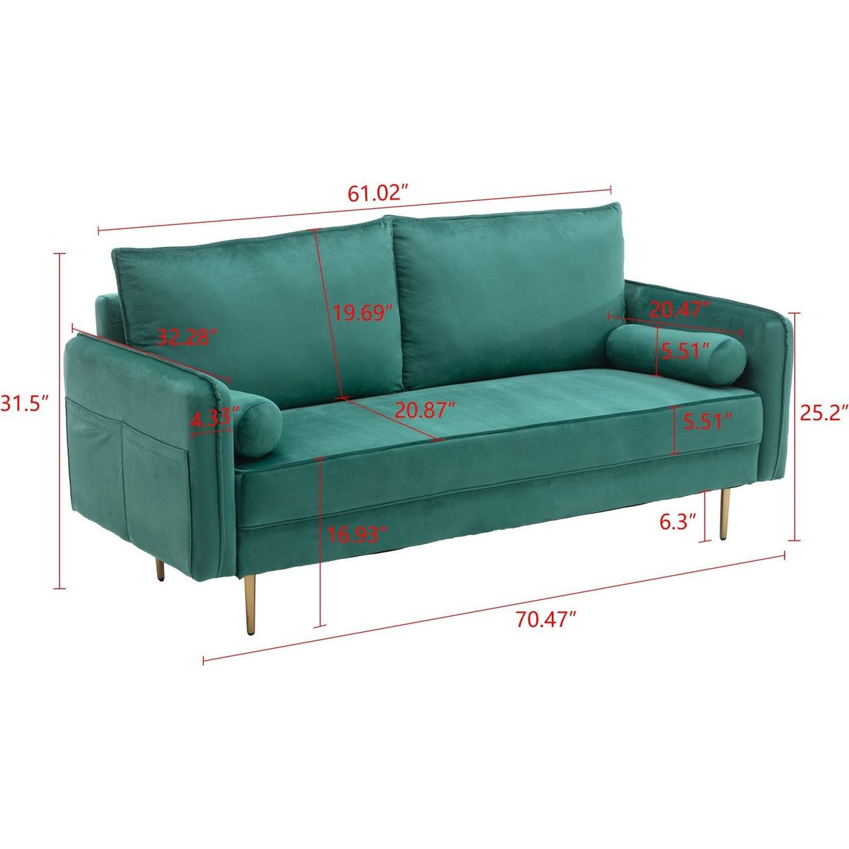 DongHeng Modern Living Room Velvet Fabric Sofa Couch, Loveseat Sofa with pocket, Green