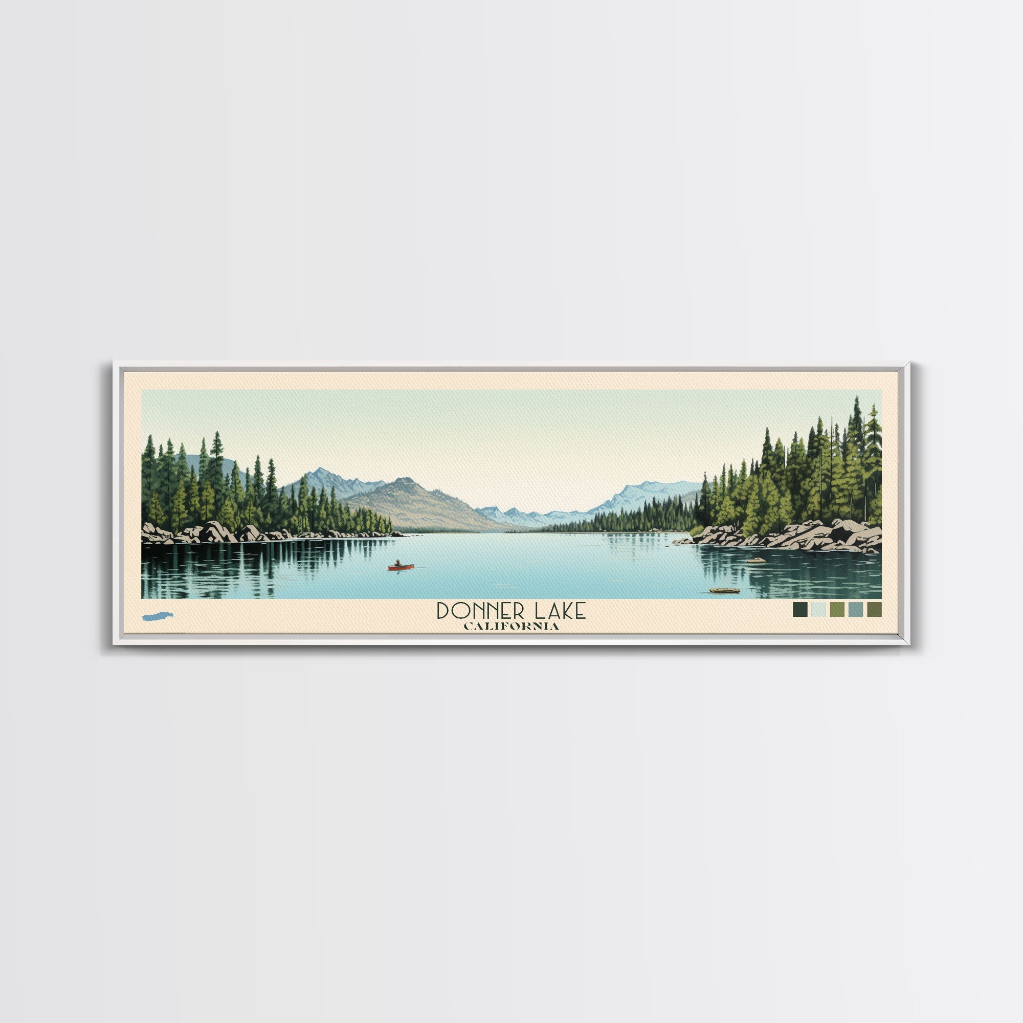 Donner Lake California Framed Canvas Print, Midcentury Modern Panoramic Wall Art, Bedroom Decor, Pop Art, Travel Poster Art, Scenic Nature Painting