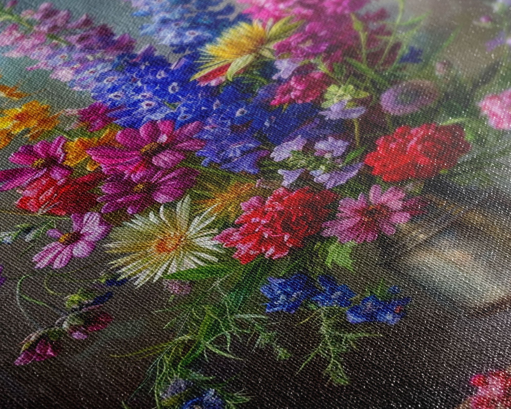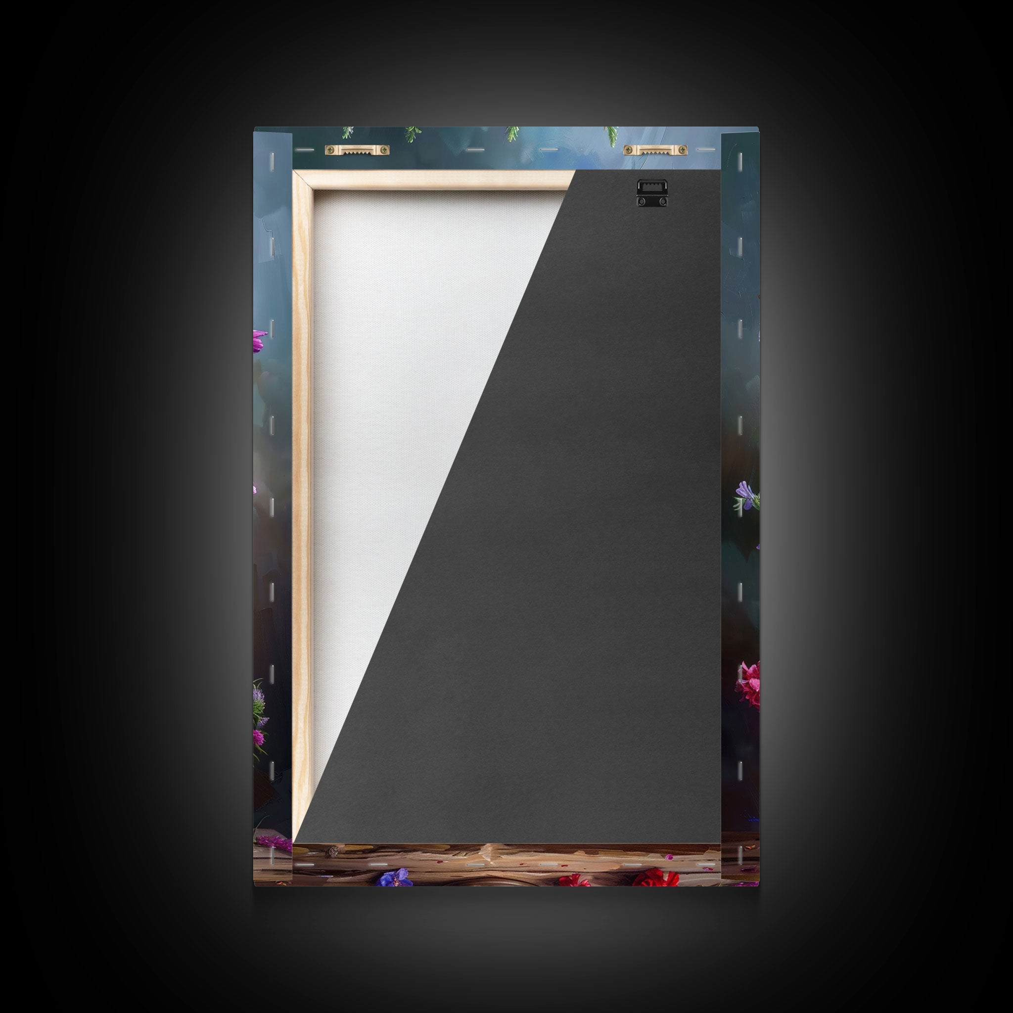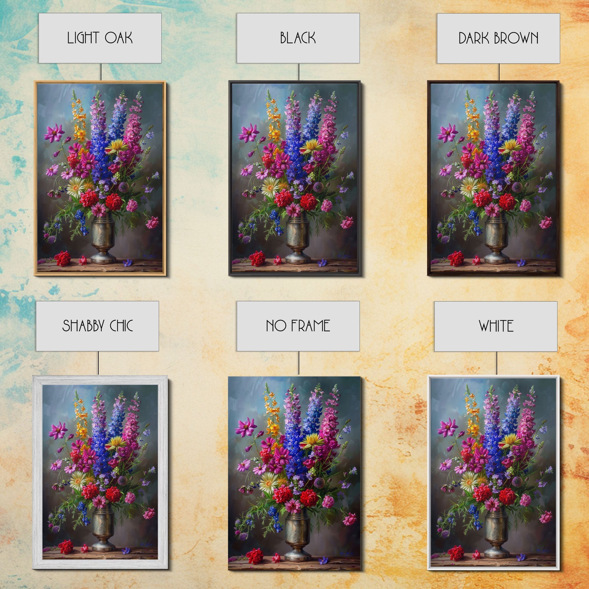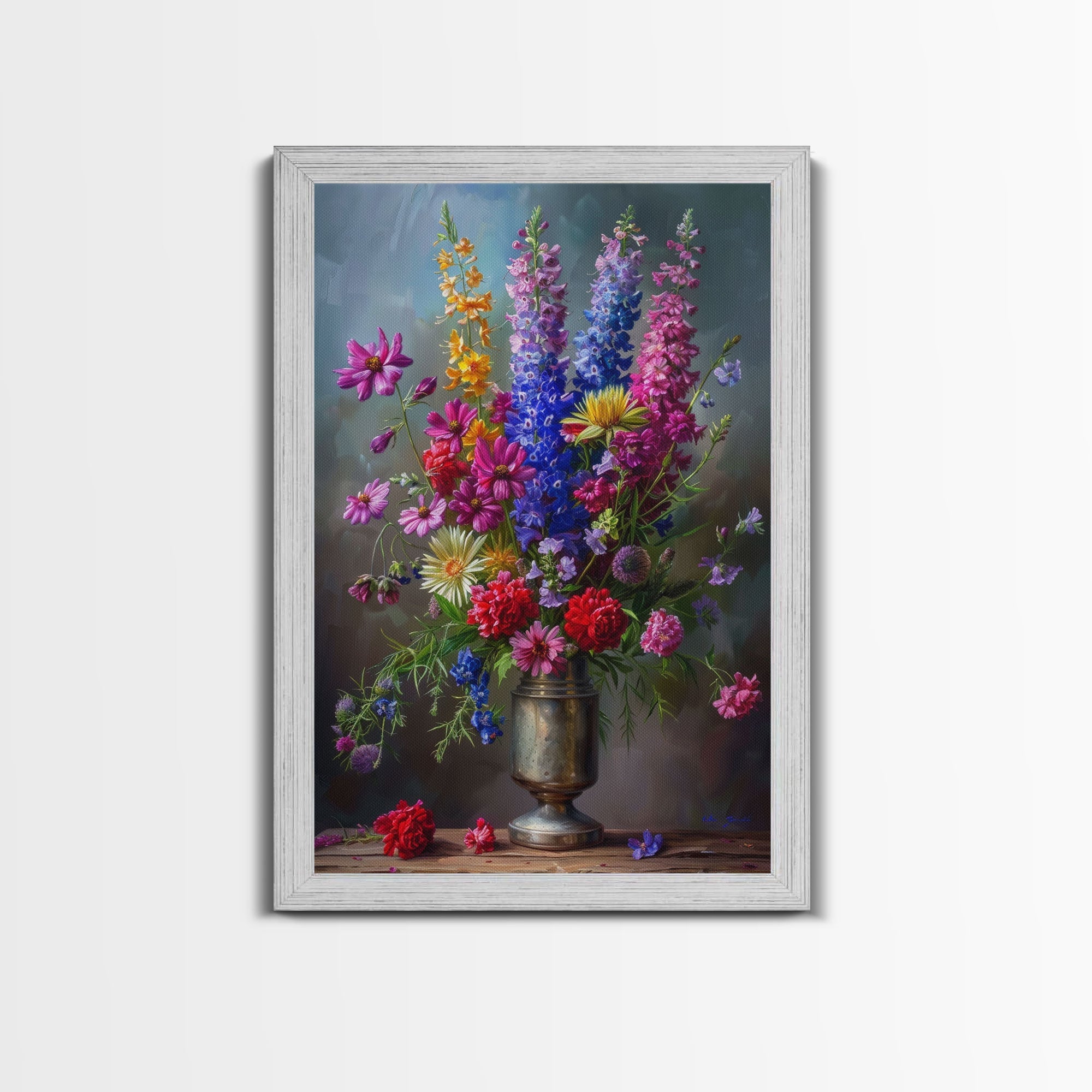 Dramatic Floral Vase Art on Rich Background - Framed Canvas Print, Bold Flower Decor for Living Room, Botanical Artwork, Floral Wall Art