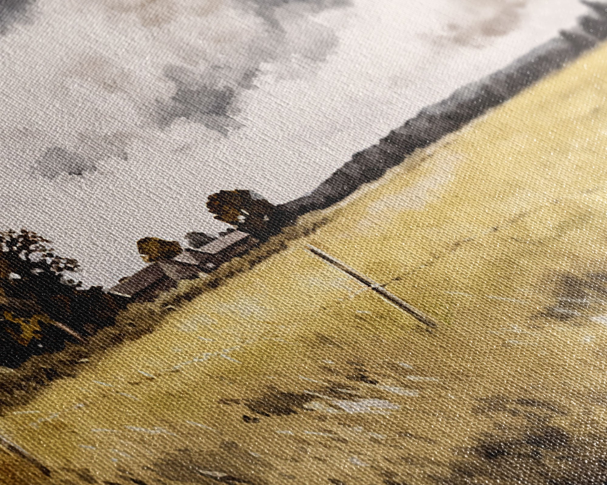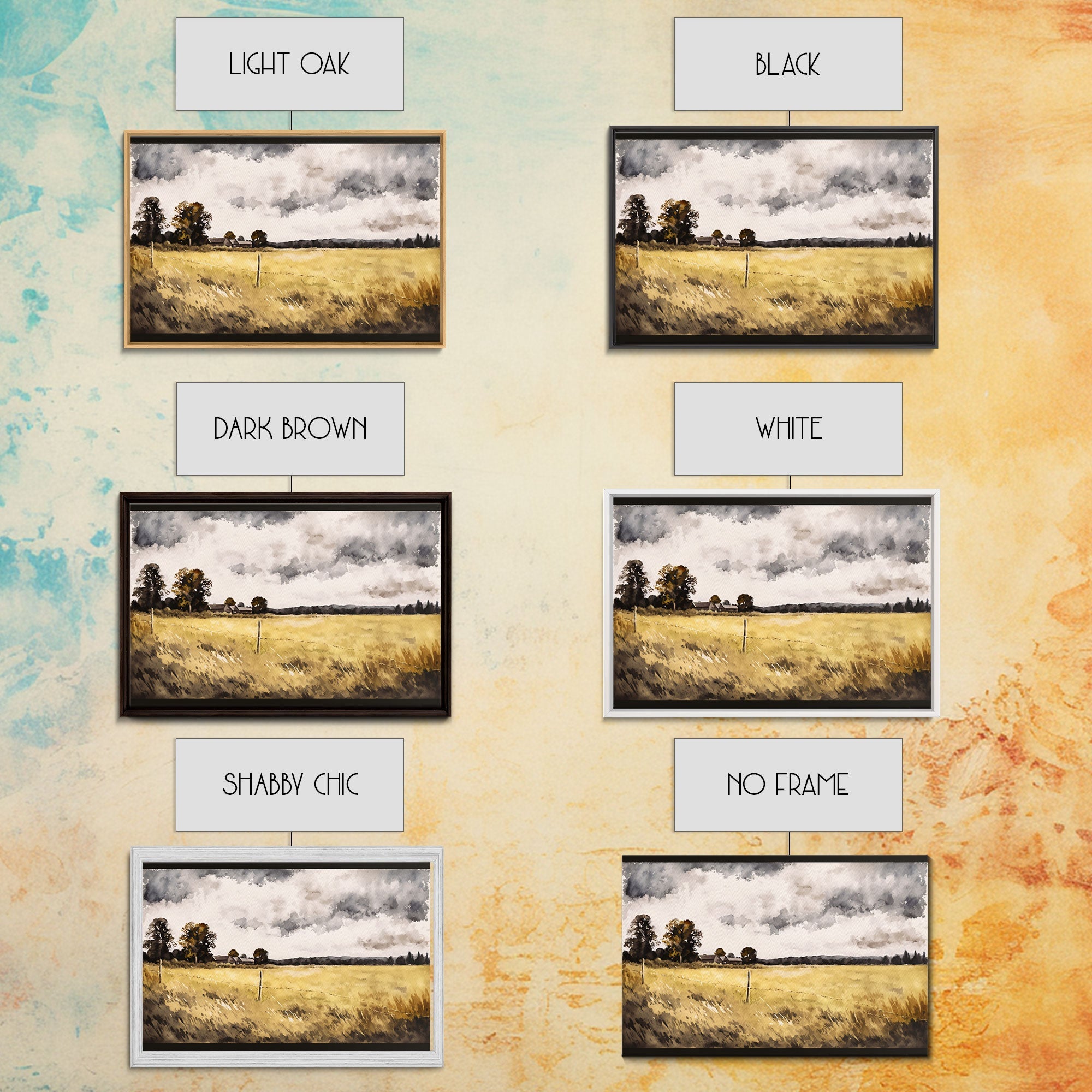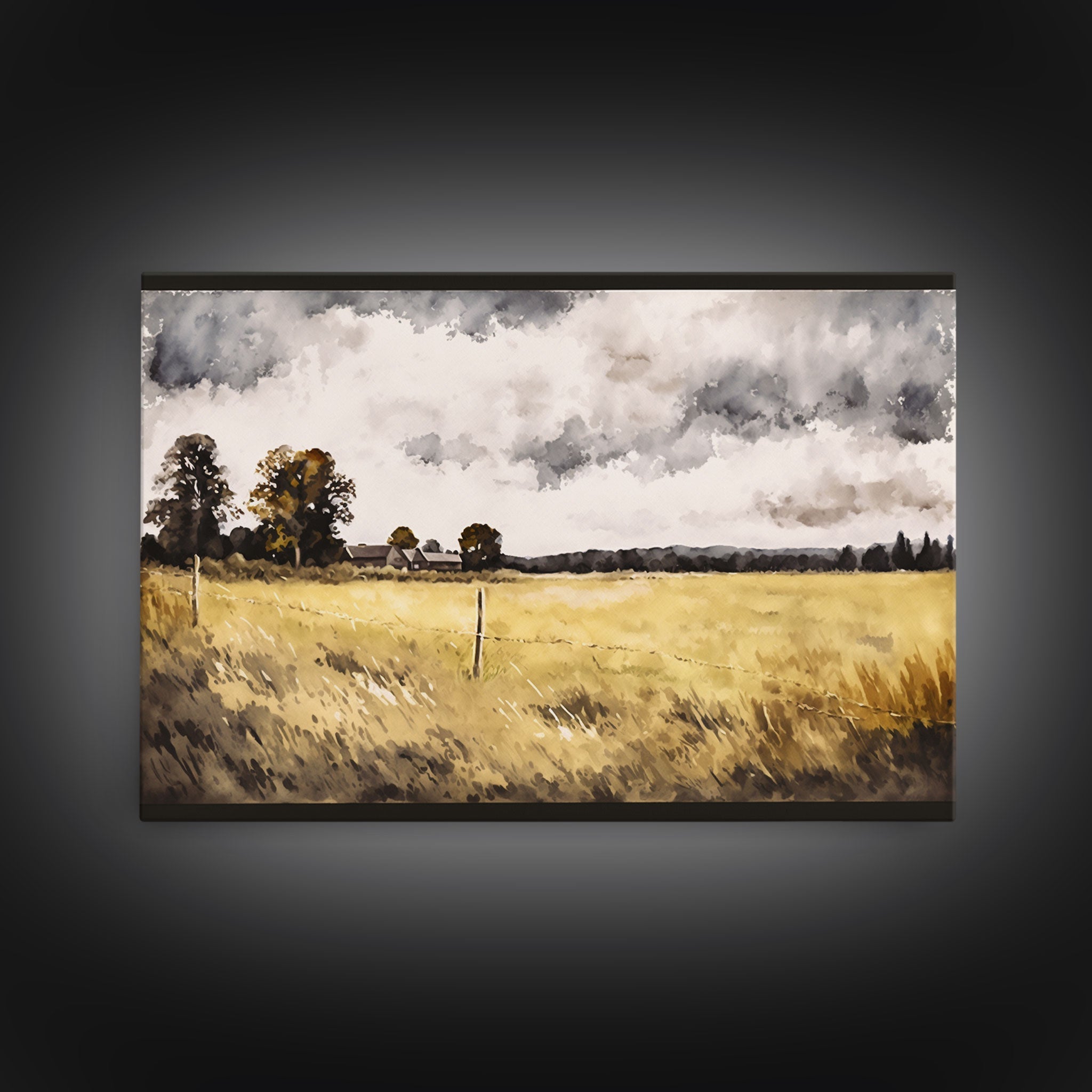 Early American Style Landscape Art | Primitive Farmhouse Decor | Framed Canvas Print | Wall Art | Wall Decor | Office Art | Muted Art