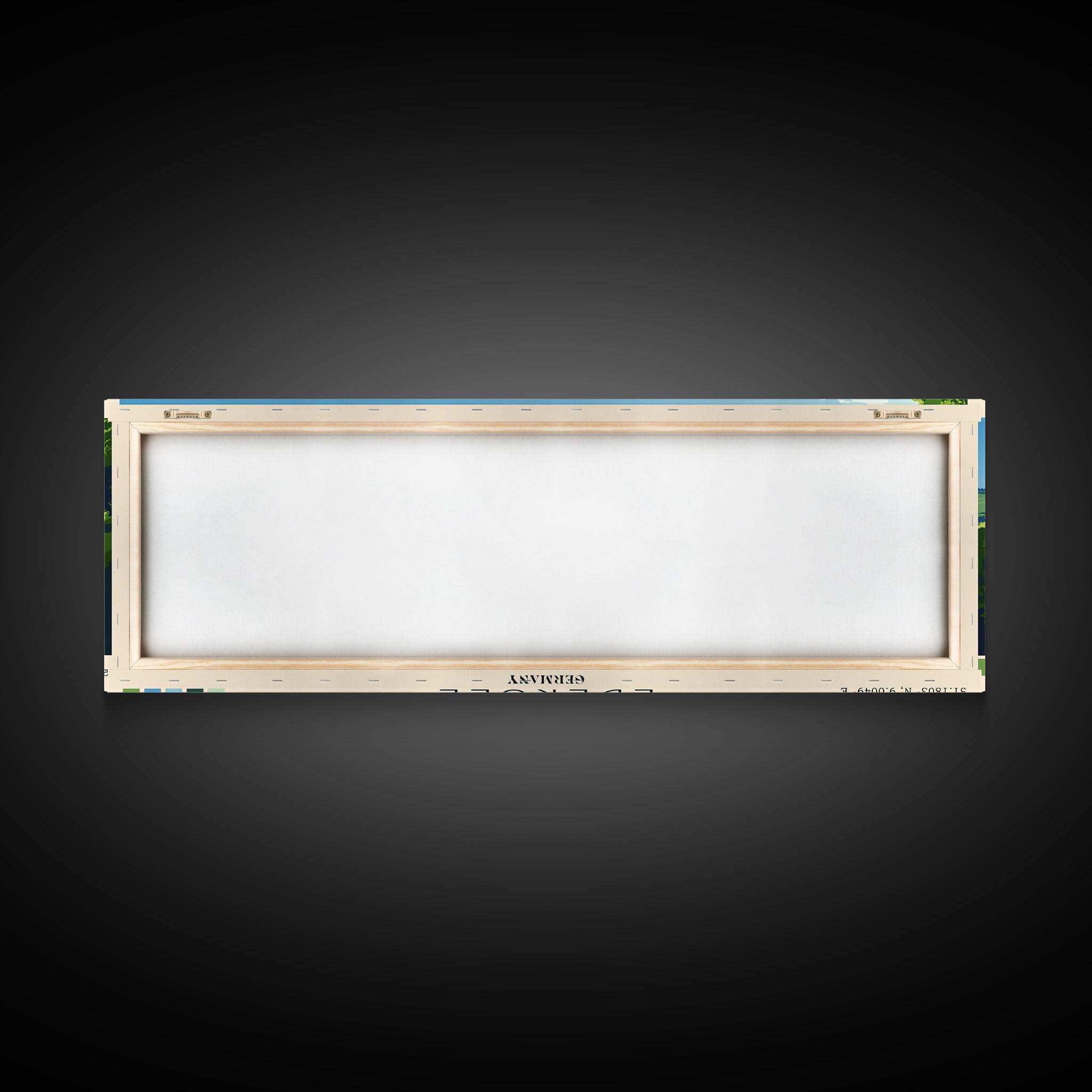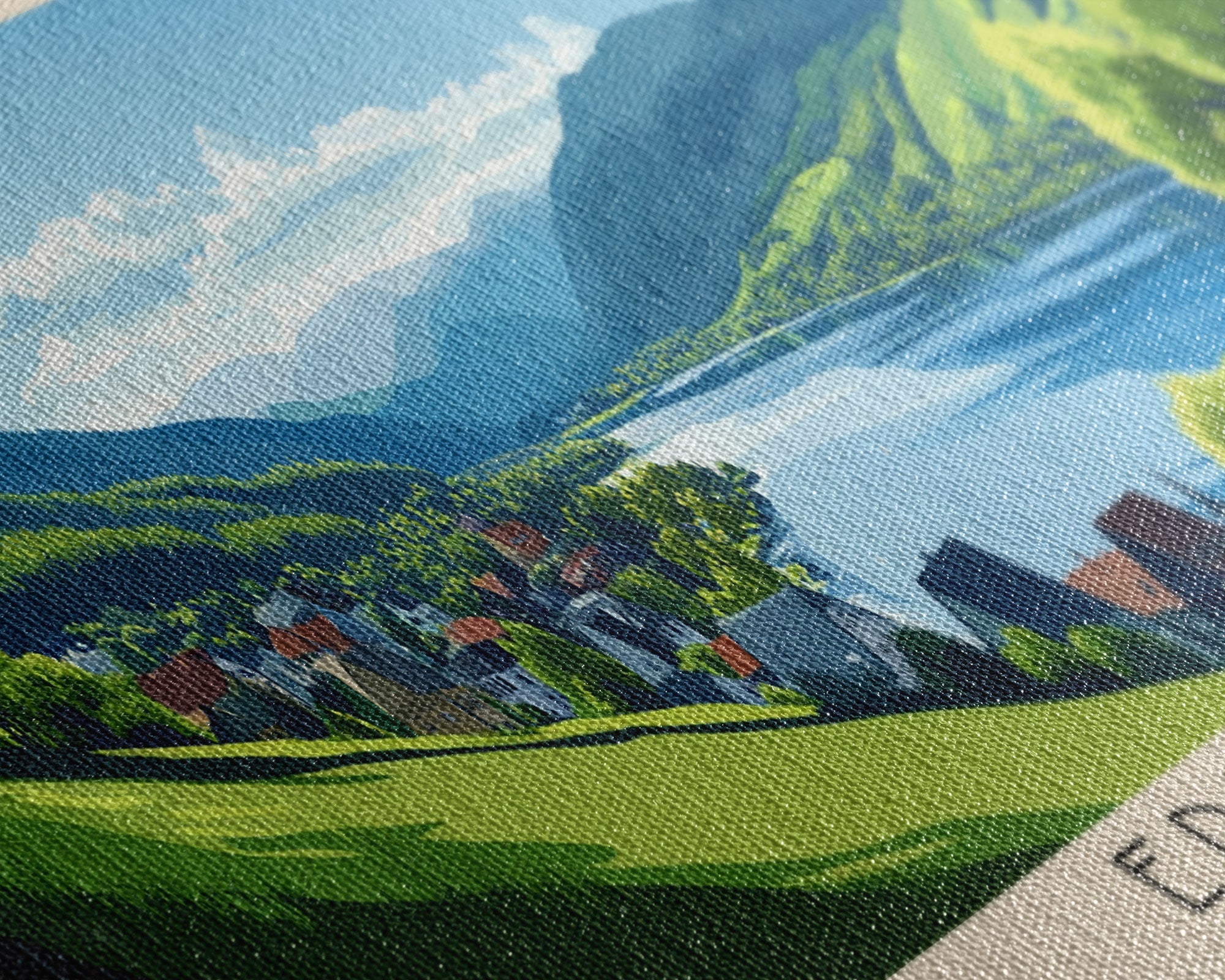 Most of our canvases are made in the USA, with the exception of canvases ordered with the light oak unstained frames, and any large canvases (24x48, 30x60, 16x48 and 20x60) ordered WITH a frame. These are temporarily made in and shipped from Europe, while we try to find a more consistent supplier in the USA.