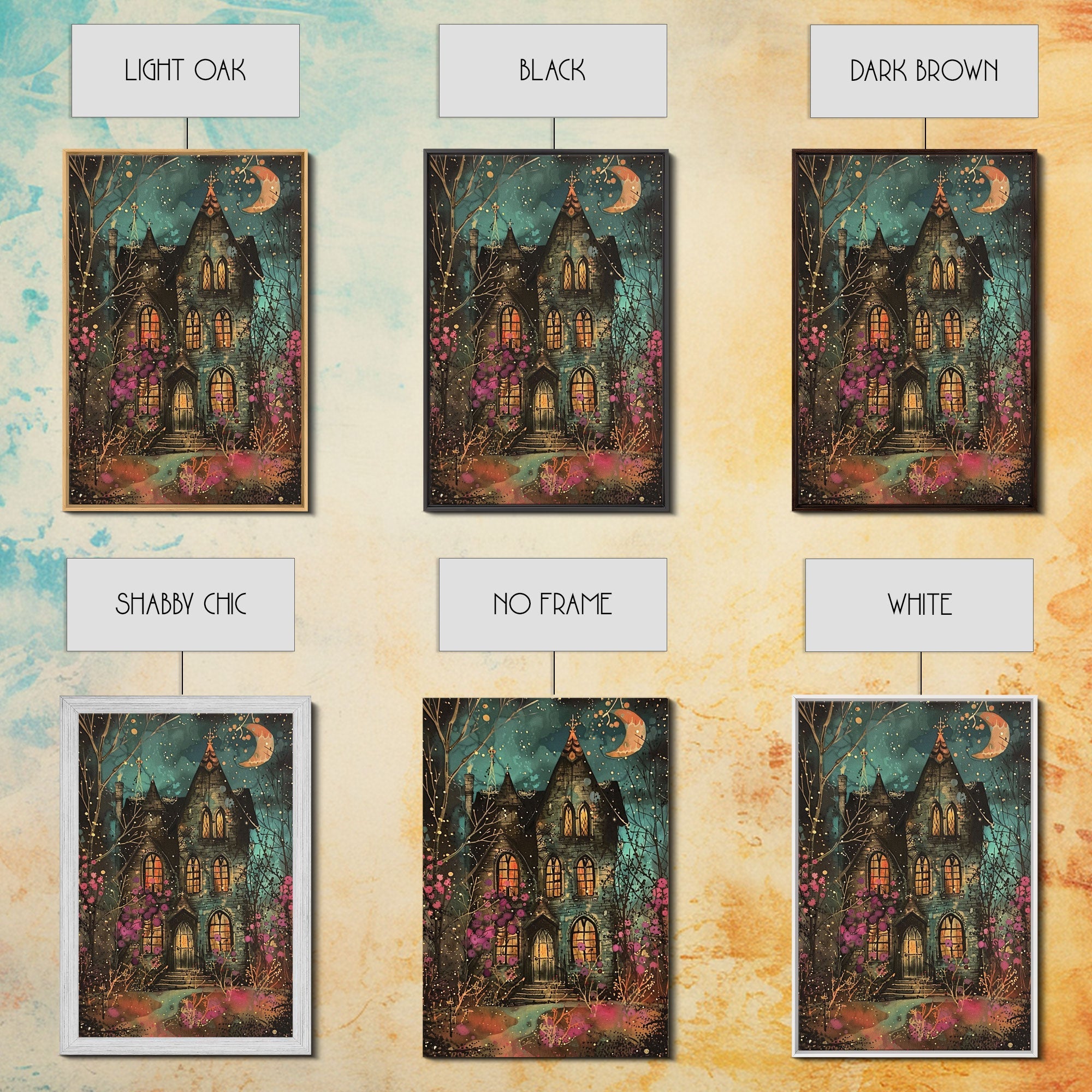 Enchanted Gothic House Framed Canvas Print, Halloween Wall Art, Spooky Art, Home Decor, Living Room Decor, Gothic Artwork, Haunted House