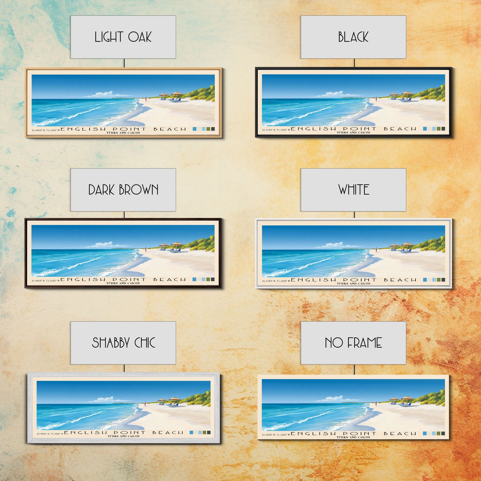 English Point Beach, Turks and Caicos Panoramic Beach Print, Vacation Gift, Turks and Caicos Wall Art, Framed Canvas Print, Framed Beach Painting
