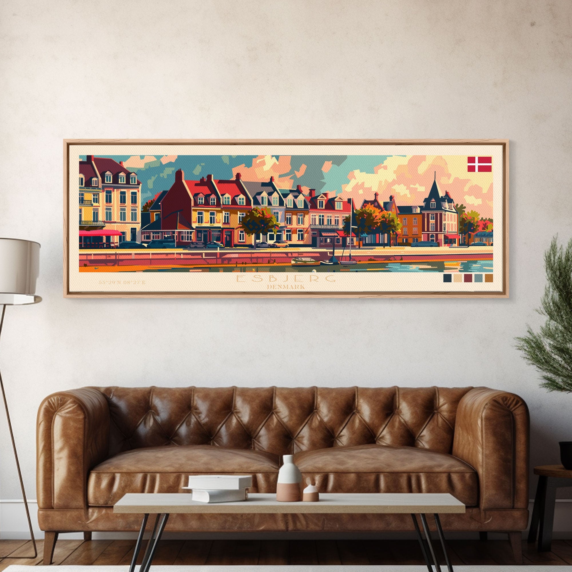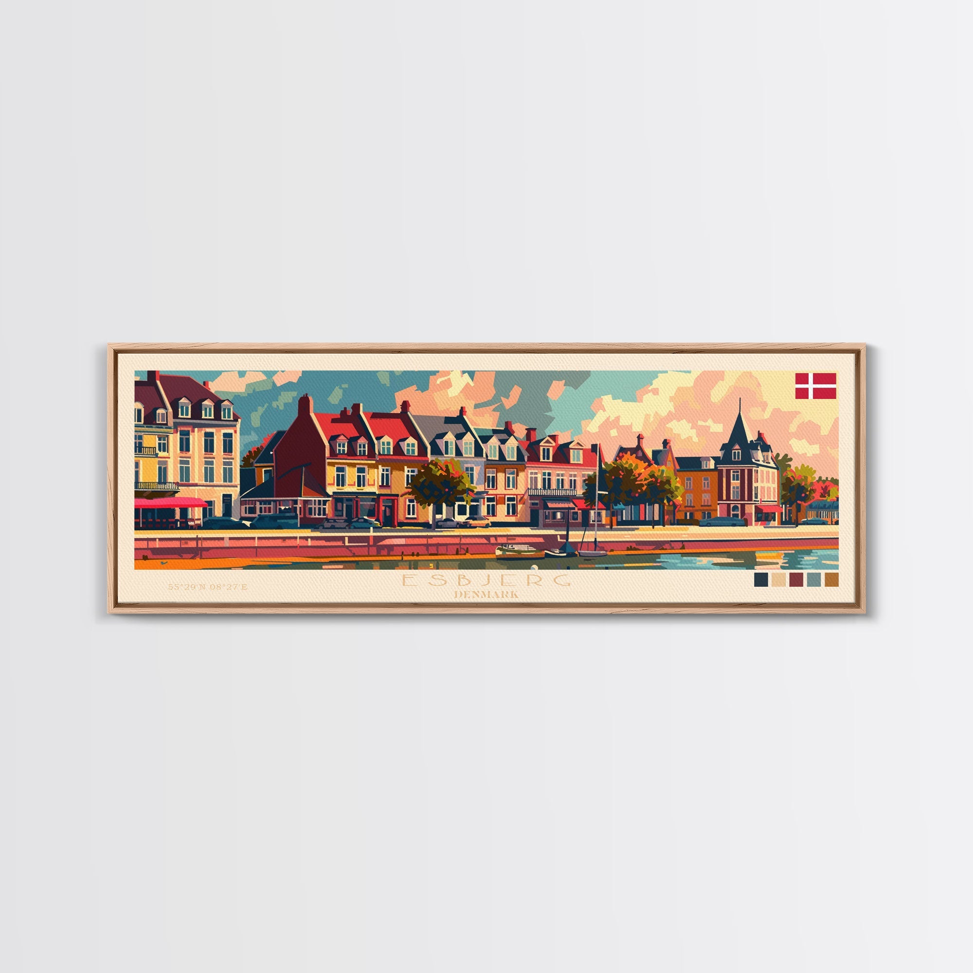 Esbjerg Denmark Travel Art, City Art, Framed Canvas Print or Metal Wall Art, Europe Travel Poster, Panoramic Wall Art, Extra Wide Wall Art
