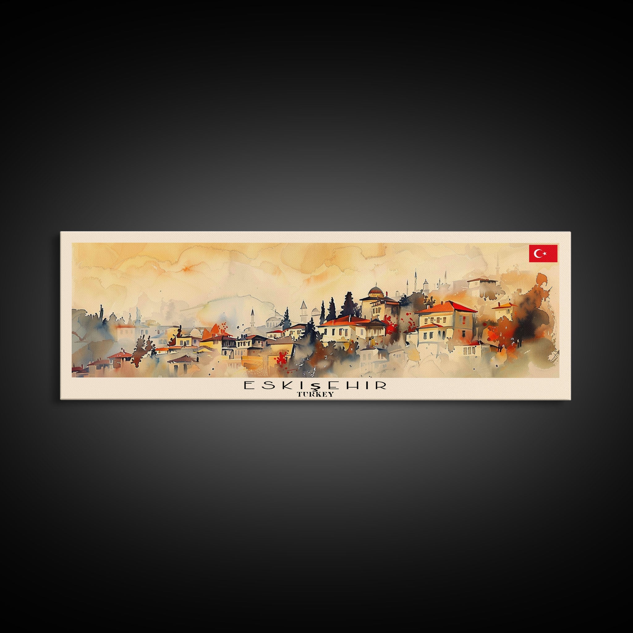 Eskisehir Turkey Panoramic Travel Poster, Framed Canvas Print or Metal Wall Art, Travel Art, Home Decor, Panoramic Painting, Midcentury Art