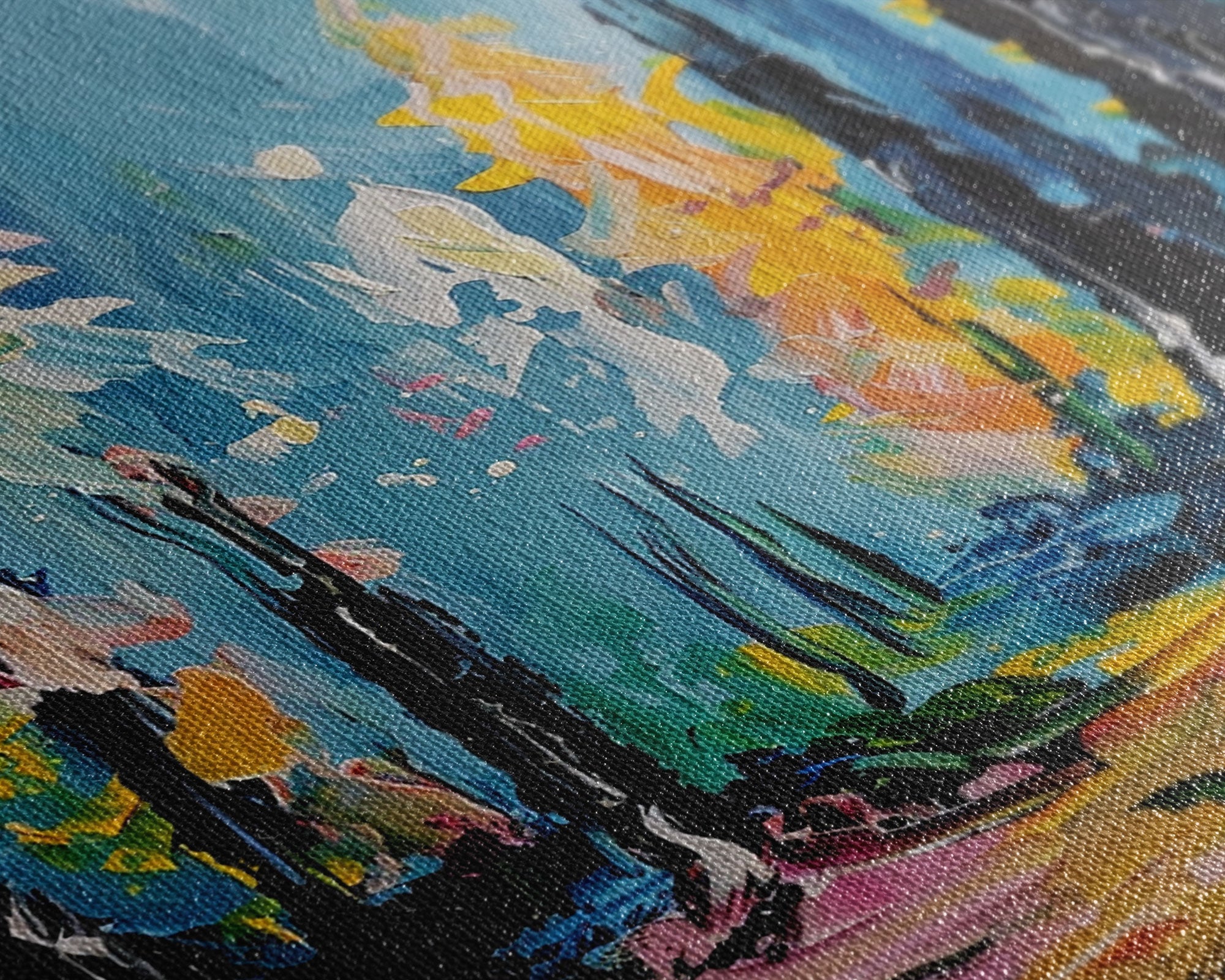 Most of our canvases are made in the USA, with the exception of canvases ordered with the light oak unstained frames, and any large canvases (24x48, 30x60, 16x48 and 20x60) ordered WITH a frame. These are temporarily made in and shipped from Europe, while we try to find a more consistent supplier in the USA.