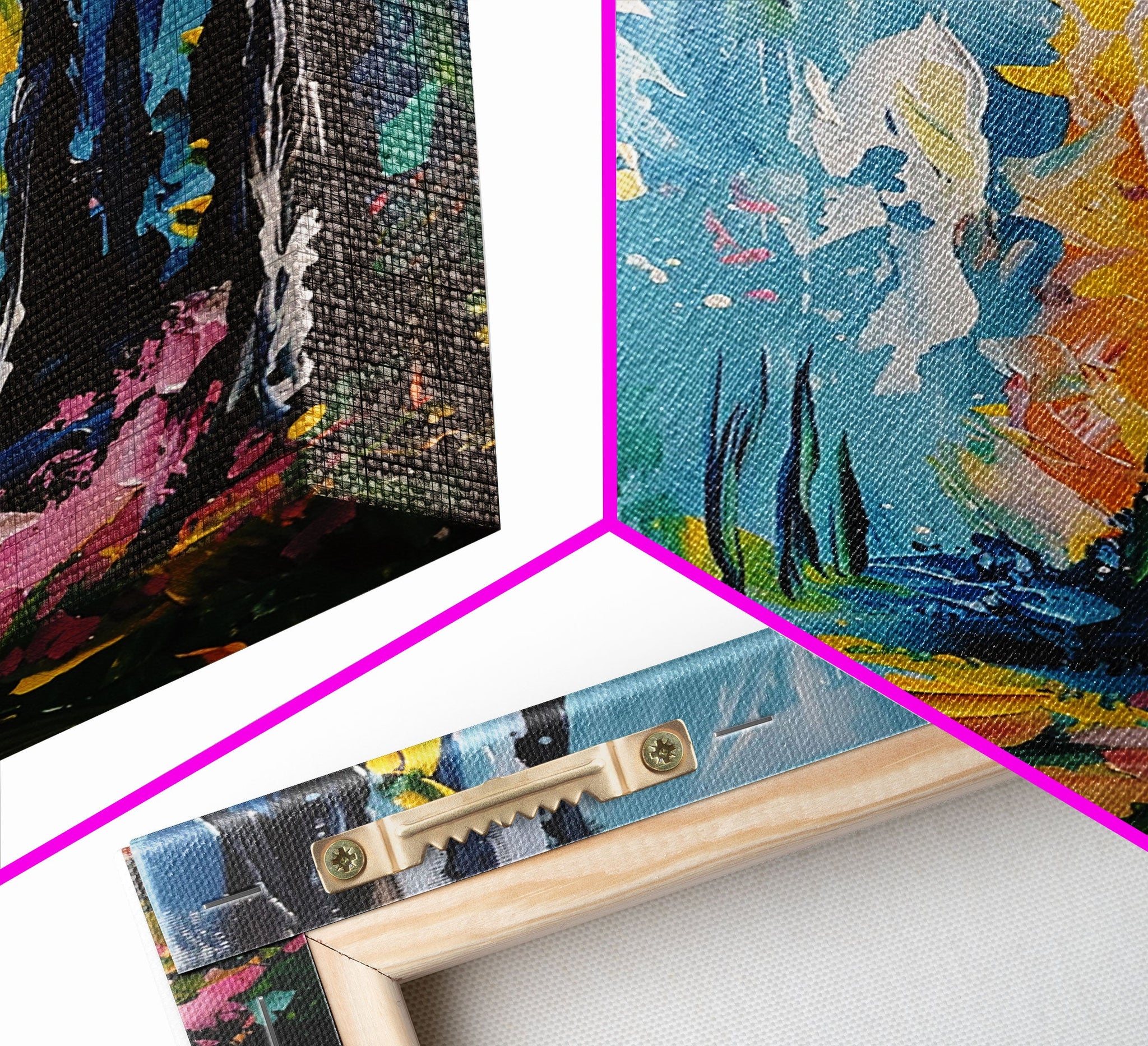 Hello and thank you for taking the time to view our modern high quality giclée artwork! We offer both posters and stretched canvas prints. Our posters are printed on Ultra Matte 60 lb / 230 GSM high quality photo paper, with a thickness of 10 mil. Our canvases are printed on museum grade 350 GSM canvas material with ECO friendly archival grade ink, then hand stretched and stapled over premium, FSC certified and shrink resistant frames. Designed and built to last a lifetime.