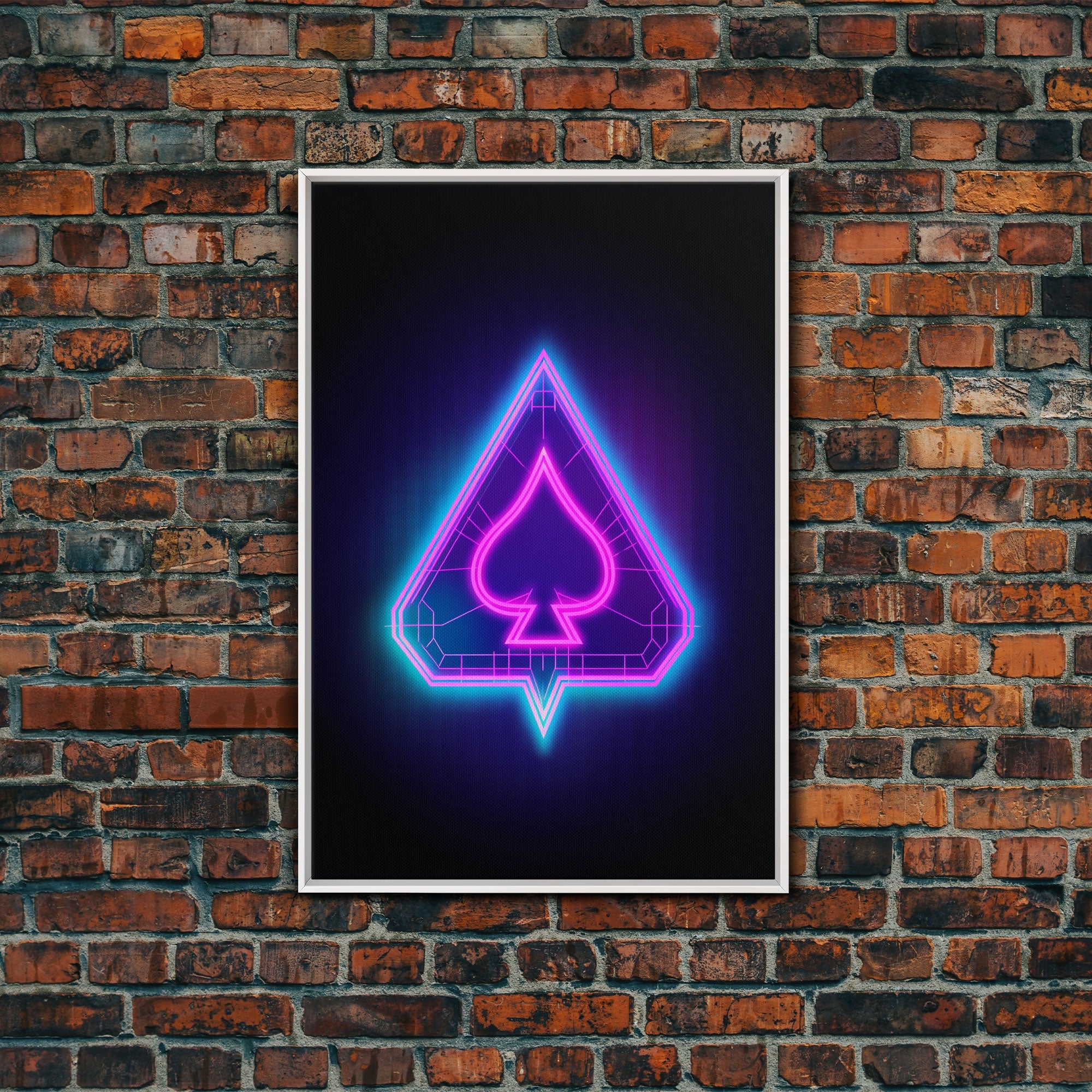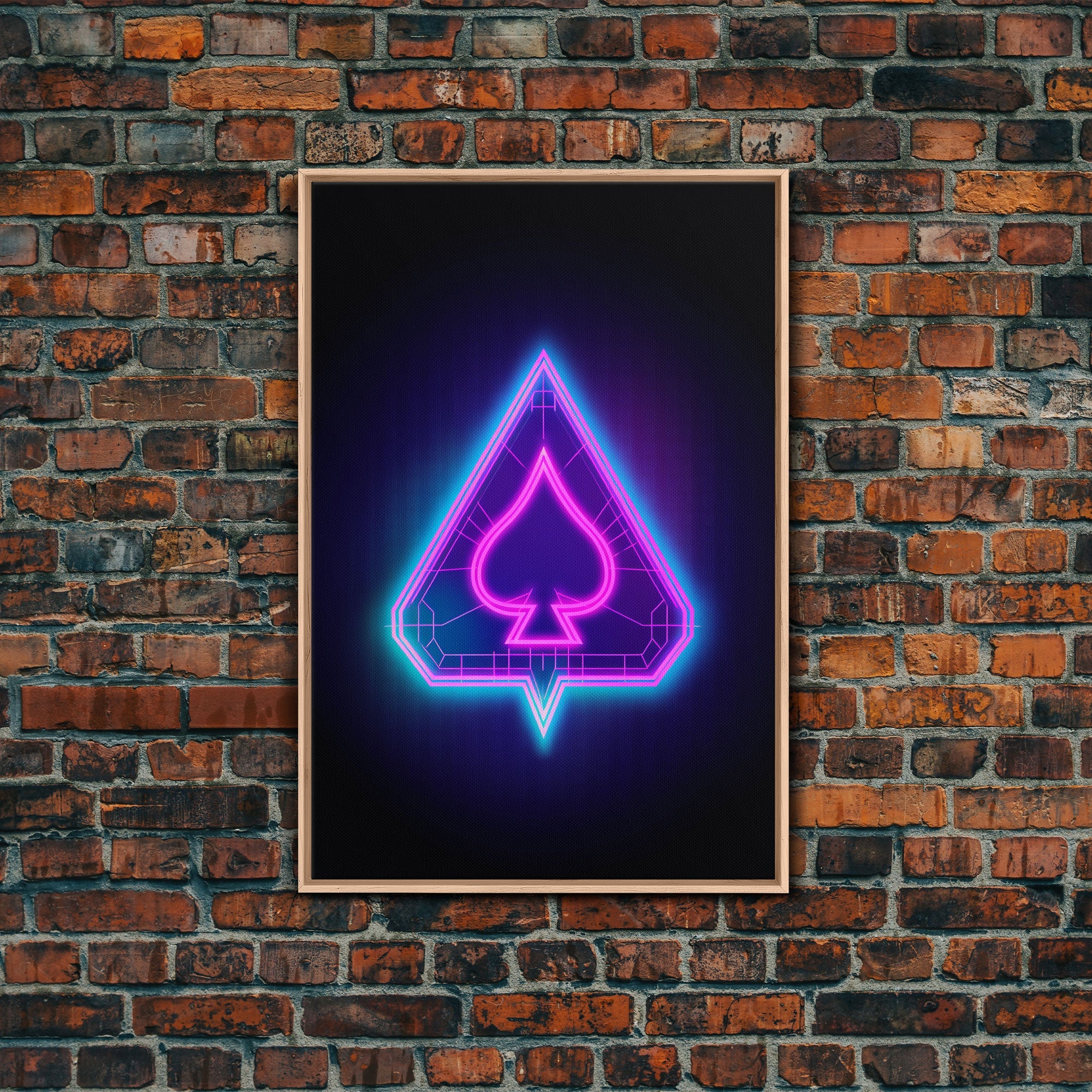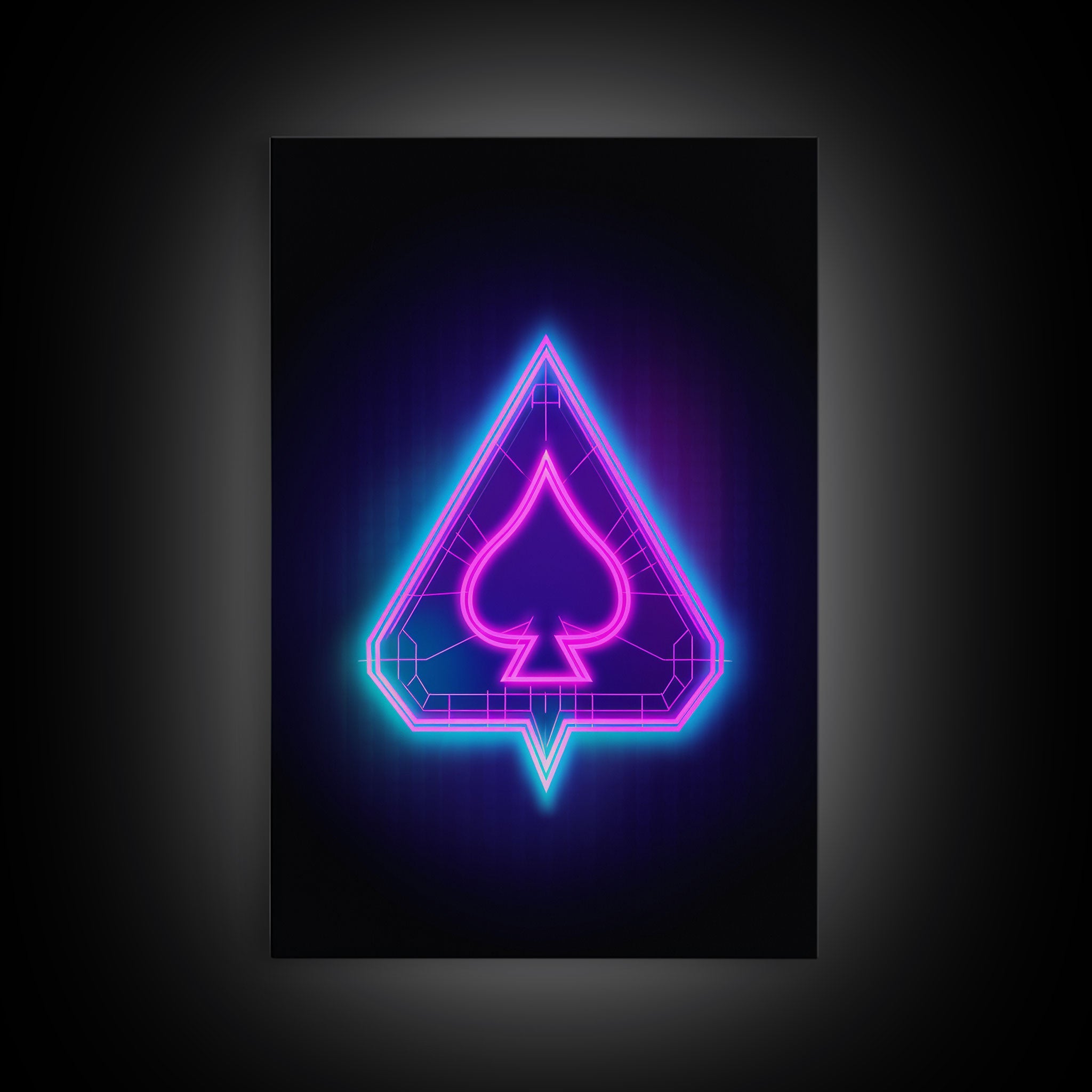Glowing Neon Lights Pink Spades Wall Decor, Poker Wall Art, Cards, Minimalist Print, Wall Decor, Canvas Print, Wall Art, Framed Canvas