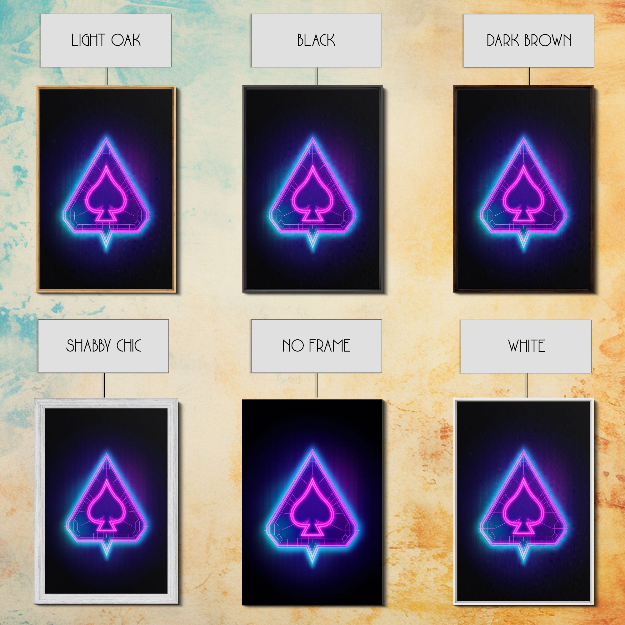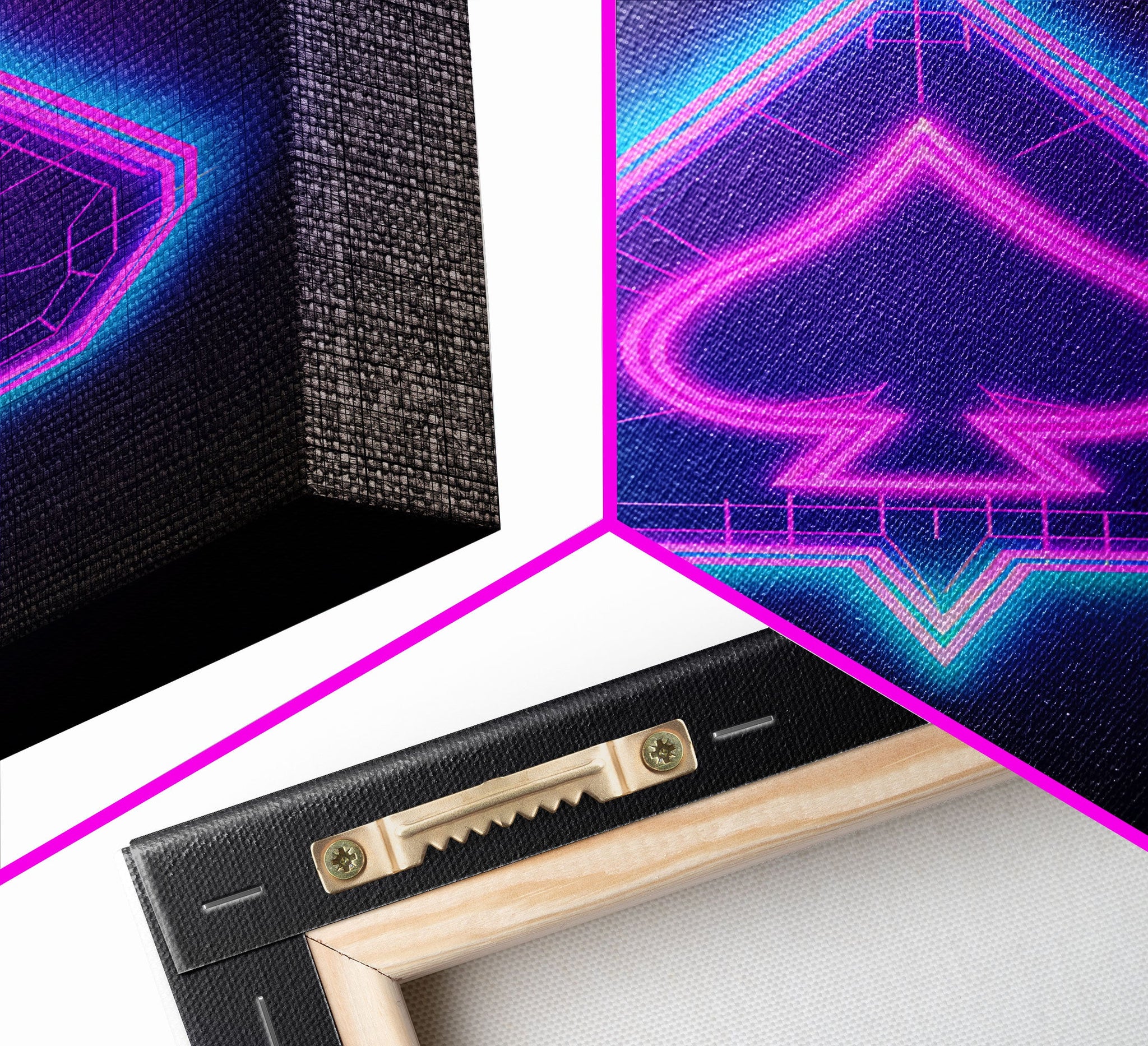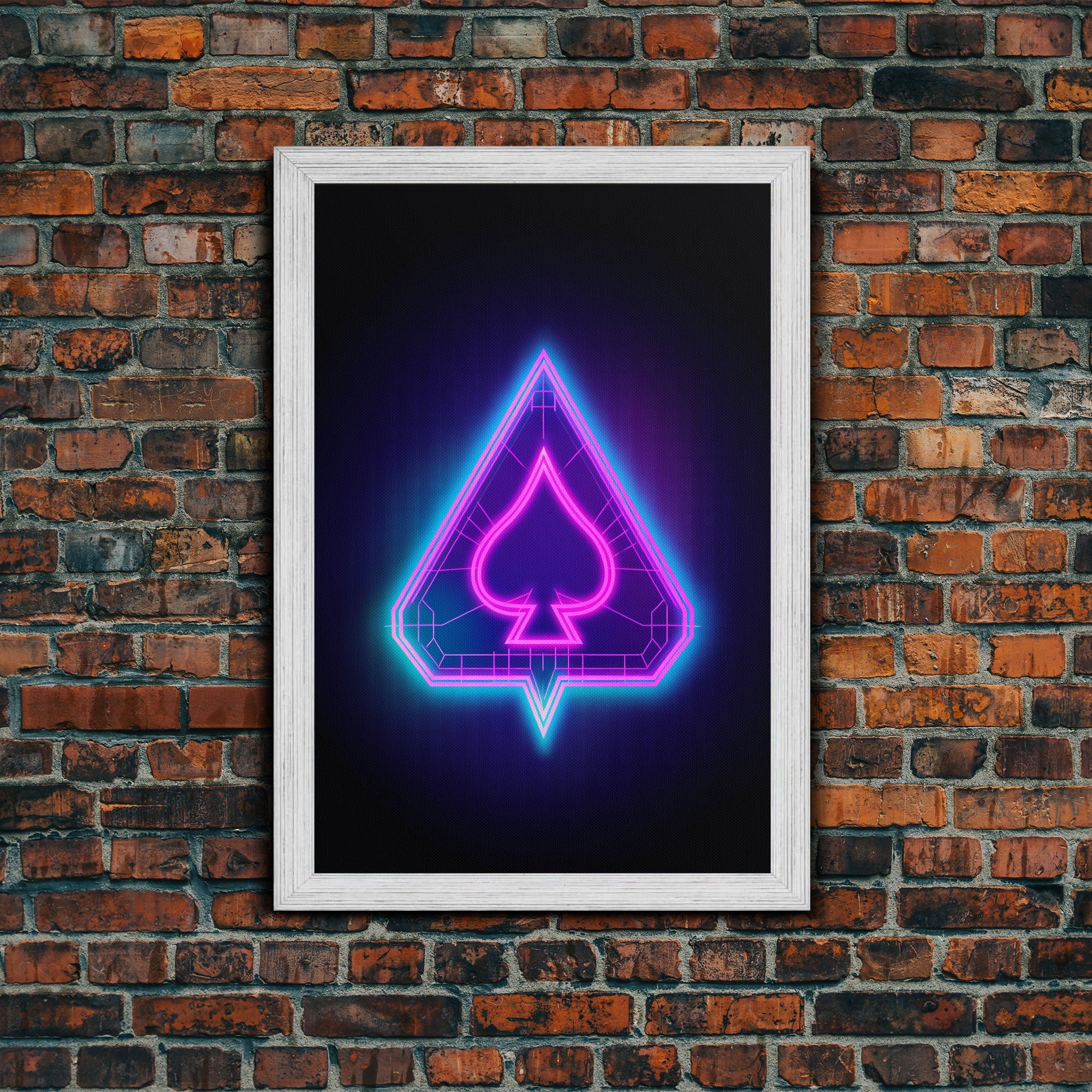 Glowing Neon Lights Pink Spades Wall Decor, Poker Wall Art, Cards, Minimalist Print, Wall Decor, Canvas Print, Wall Art, Framed Canvas