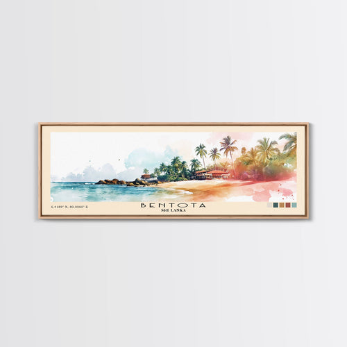 Bentota, Sri Lanka Panoramic Beach Print, Vacation Gift, Sri Lanka Wall Art, Framed Canvas Print, Framed Beach Painting