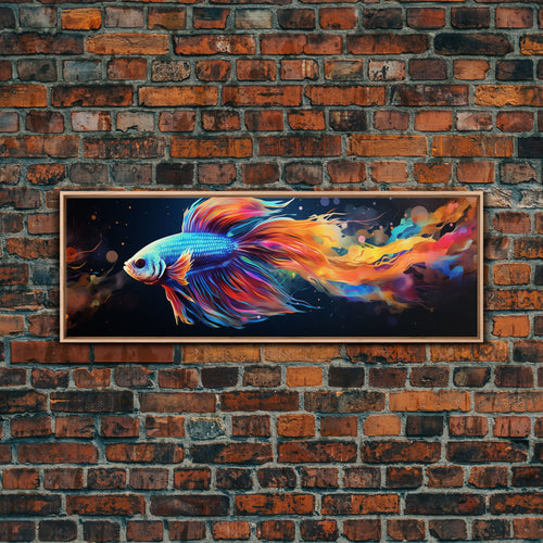 Betta Fish Painting Wall Art, Framed Canvas Print, Siamese Fighting Fish, Aquarium Wall Art, Colorful Pet Fish painting