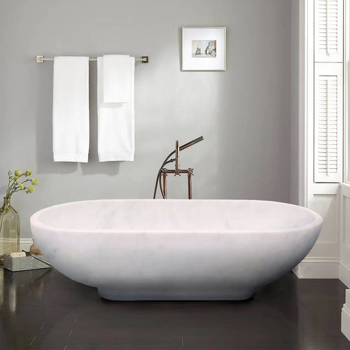 Bianco Carrara White Marble Bathtub Hand-carved from Solid Marble Block (W)30" (L)70" (H)20"