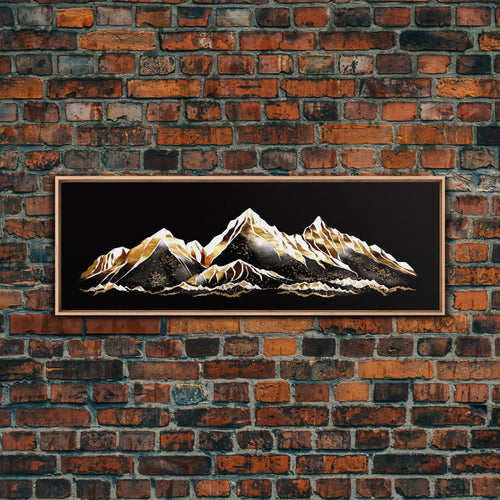 Black & Gold Mountain Landscape Painting, Framed Canvas Print, Panoramic Art, Extra Wide Art, Center Piece Decor, 24 x 72 Art, Huge Art