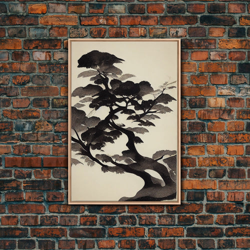 Black and White Bonsai Tree, Framed Canvas Print, Ready To Hang Framed Wall Art, Living Room Wall Hanging