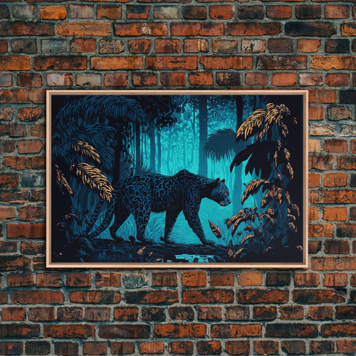 Black and Turquoise Panther, framed canvas print, unique wall art, wildlife canvas art, living room wall art