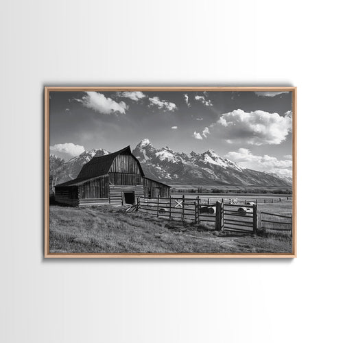 Black and White Photo Print Of An Old Barn In The Mountains, Framed Canvas Print or Metal Art, Western Decor, Colorado Mountains Wall Art