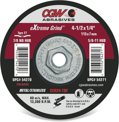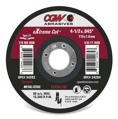 CGW Abrasives eXtreme Cut Ceramic Cutting Wheels, Stainless Steel