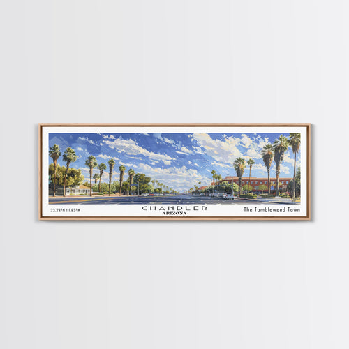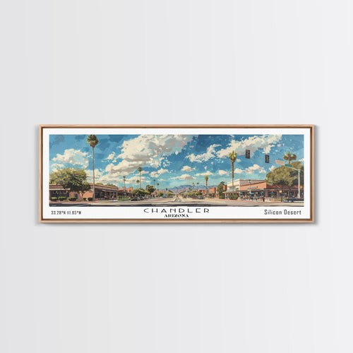 Chandler Arizona Panoramic Wall Art Framed Canvas Print, Mid Century Modern Art, Pop Art Style, Travel Poster, Home Decor, Retro Style
