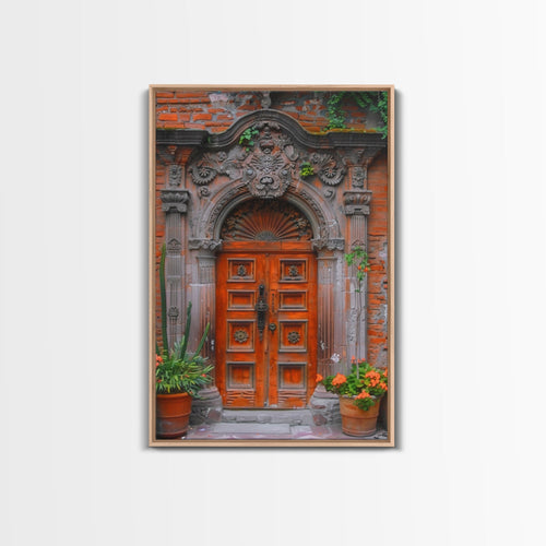 Change23 Mexican Wall Art, Colorful Mexican Door Architecture Painting Framed Canvas Print, Traditional Hacienda Architecture, Ready To Hang