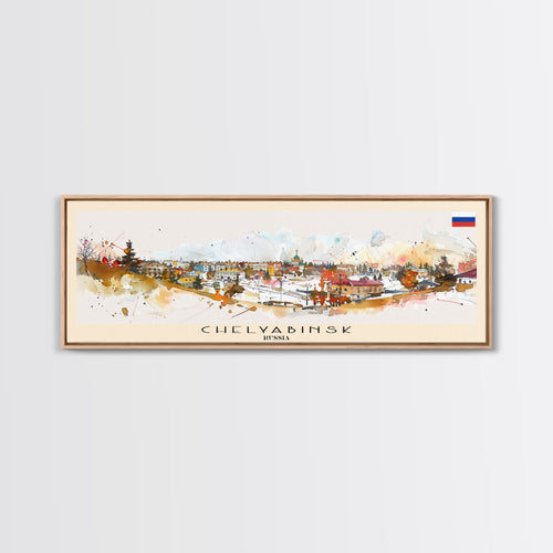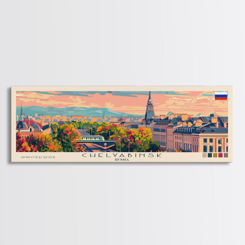 Chelyabinsk Russia Panoramic Travel Poster, Framed Canvas Print or Metal Wall Art, Travel Art, Home Decor, Panoramic Painting, Midcentury Art