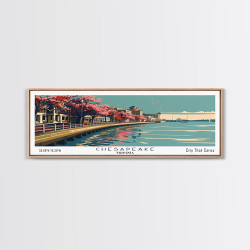 Chesapeake Virginia Panoramic Travel Poster Framed Canvas Print, Mid Century Modern Art, Pop Art Style, Wall Art Decor, Home Decoration