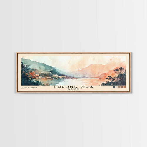 Cheung Sha, Hong Kong Panoramic Print, Vacation Gift, Hong Kong Wall Art, Beach Painting, Beach Decor, Large Wall Art, Wood Frame Art