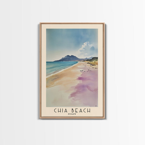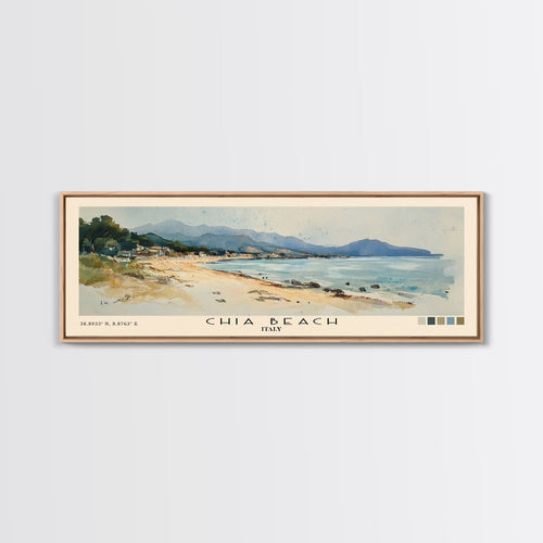 Chia Beach, Italy Panoramic Beach Print, Vacation Gift, Italy Wall Art, Framed Canvas Print, Framed Beach Painting