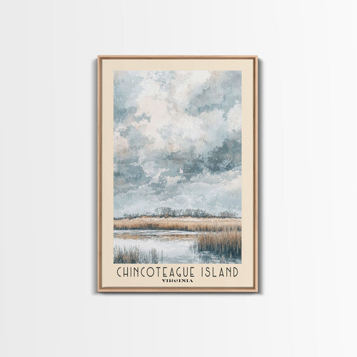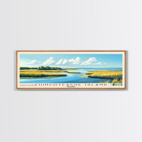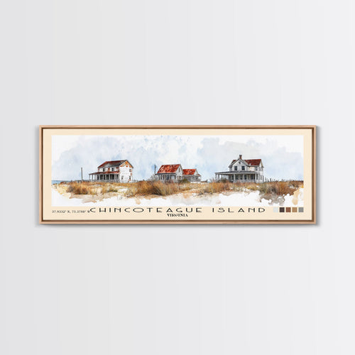 Chincoteague Island, Virginia Panoramic Beach Print, Vacation Gift, Virginia Wall Art, Framed Canvas Print, Framed Beach Painting
