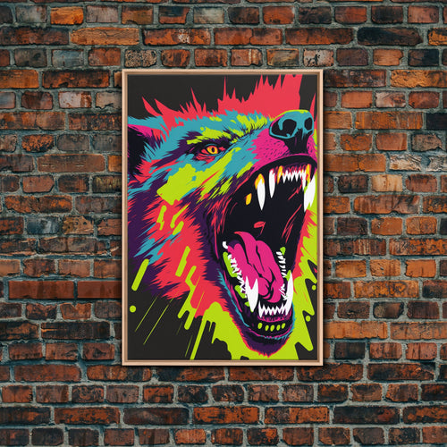 CHOMP! Wolf Bite! Framed Canvas Print, Unique Pop Art Style Animal Print