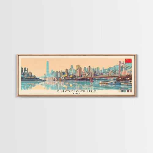 Chongqing, China Panoramic Travel Poster Canvas Print, Chongqing, China Painting, China Art, Chongqing Travel Art, Guest Room Painting