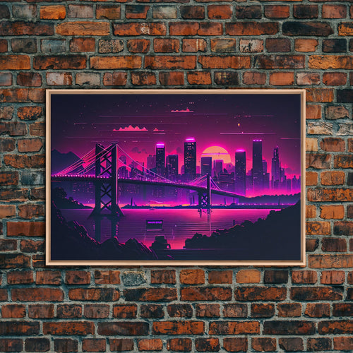 City Wall Art | Framed Canvas Print | Living room art | Lines | Retro | Wonderful art | Landscape | Outrun Style | Futuristic | Synthwave